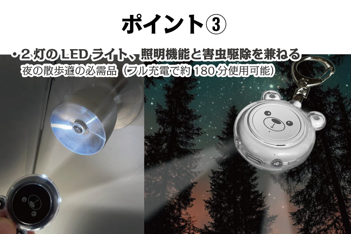 便利な簡易ライト付き!最長 180 分間持続する内蔵 2LED ライト、いざというときお役立ちアイテムに!鍵穴、足元の照明など様々なシーンで大活躍まちがいなし!夏の夜の散歩のお供に。