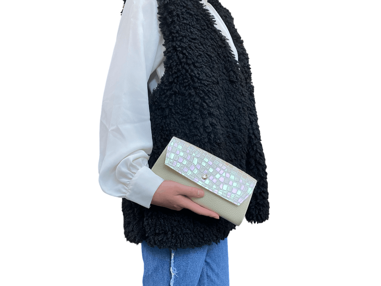 お手持ちのバッグにすっぽりと収ますサイズで、クラッチバッグやお財布ポーチとしてもお持ち頂けます。
