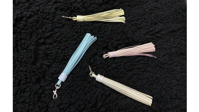 別売の商品と同じ革で作ったフリンジを付けることでさらにお洒落にお持ち頂けます