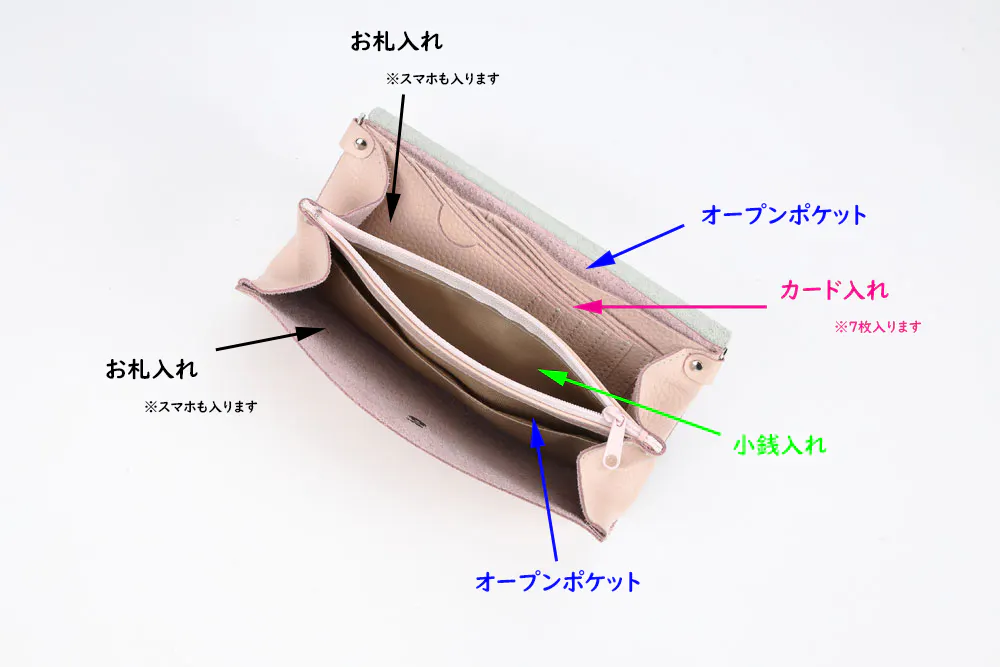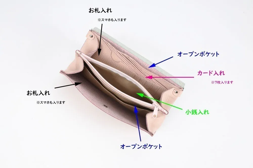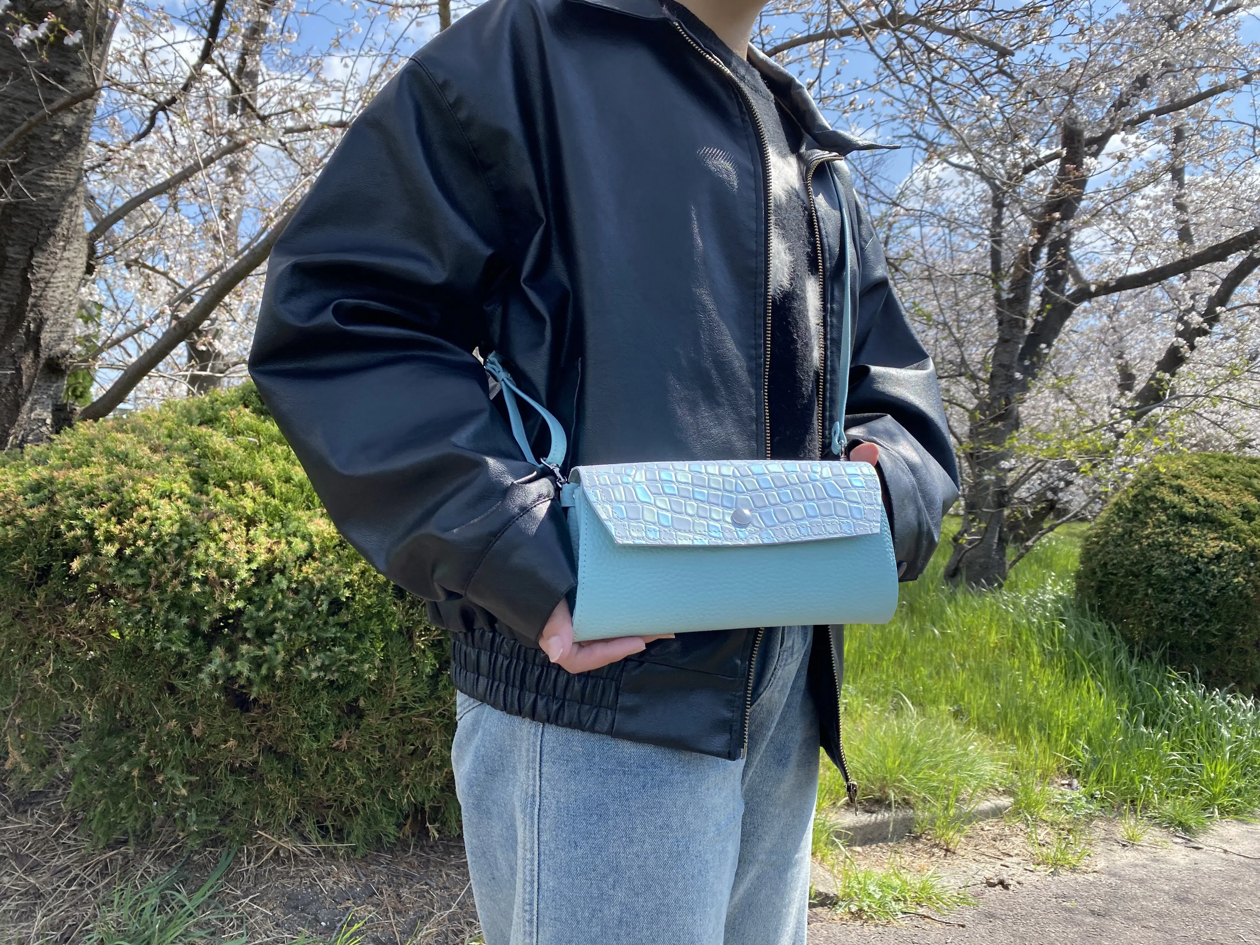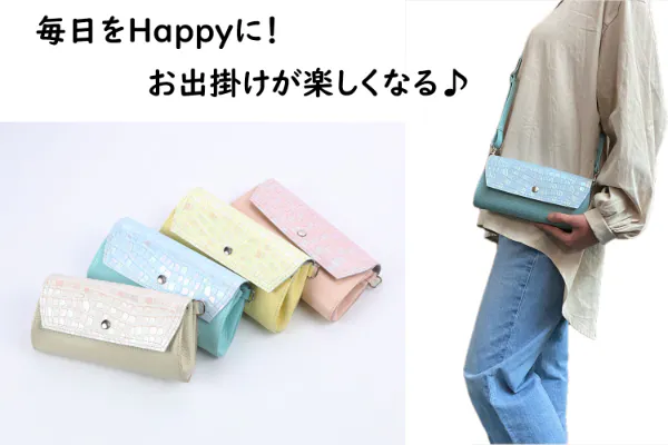 ショルダーを付けることでお財布ポシェットとしてもお持ち頂けます。これからのシーズンお出掛けが楽しくなること間違いなしです◎