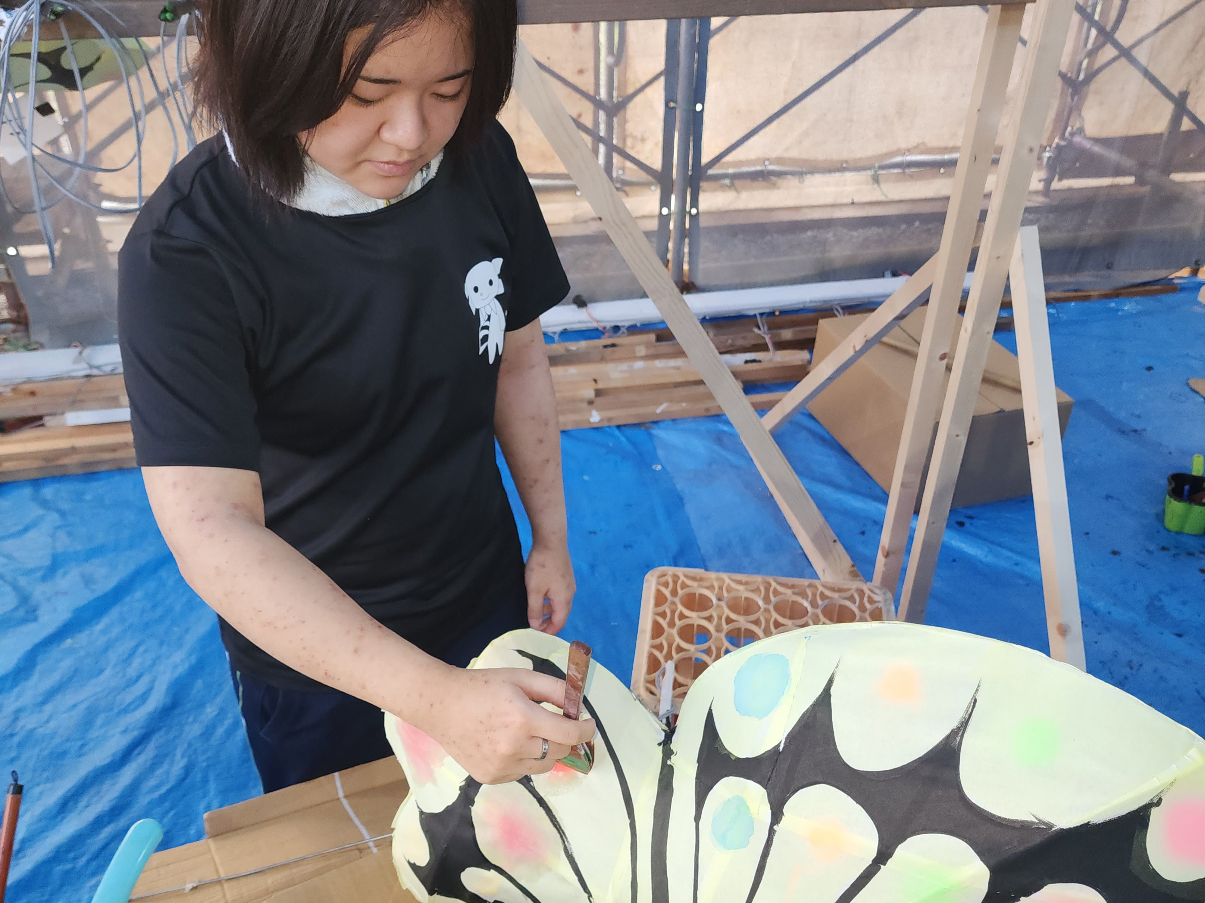 今日は、蝶のパーツや顔まわりの色入れなど、細かな仕上げ作業が進みました。