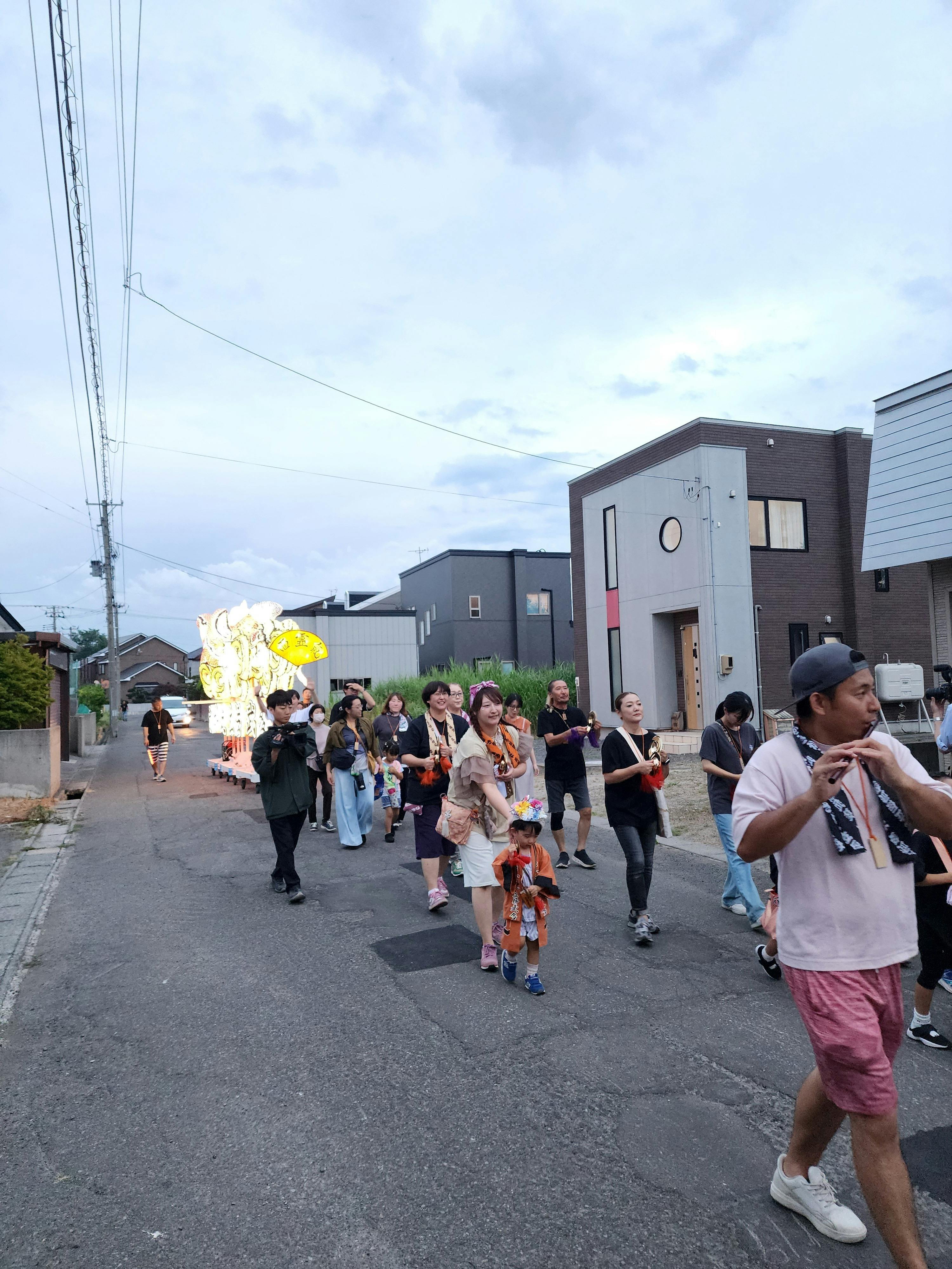 ねぷたはなく、前灯籠とお囃子だけですが