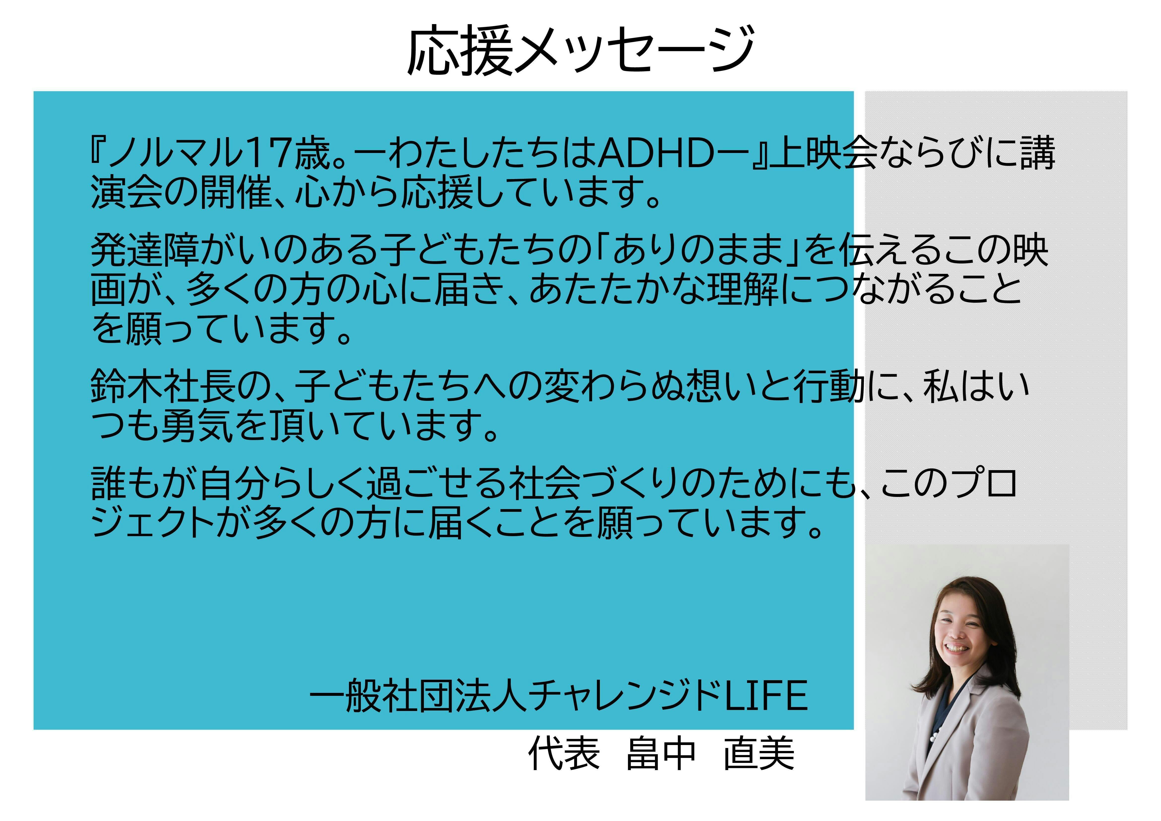 『ノルマル17歳。ーわたしたちはADHDー』上映会ならびに講演会の開催、心から応援しています。