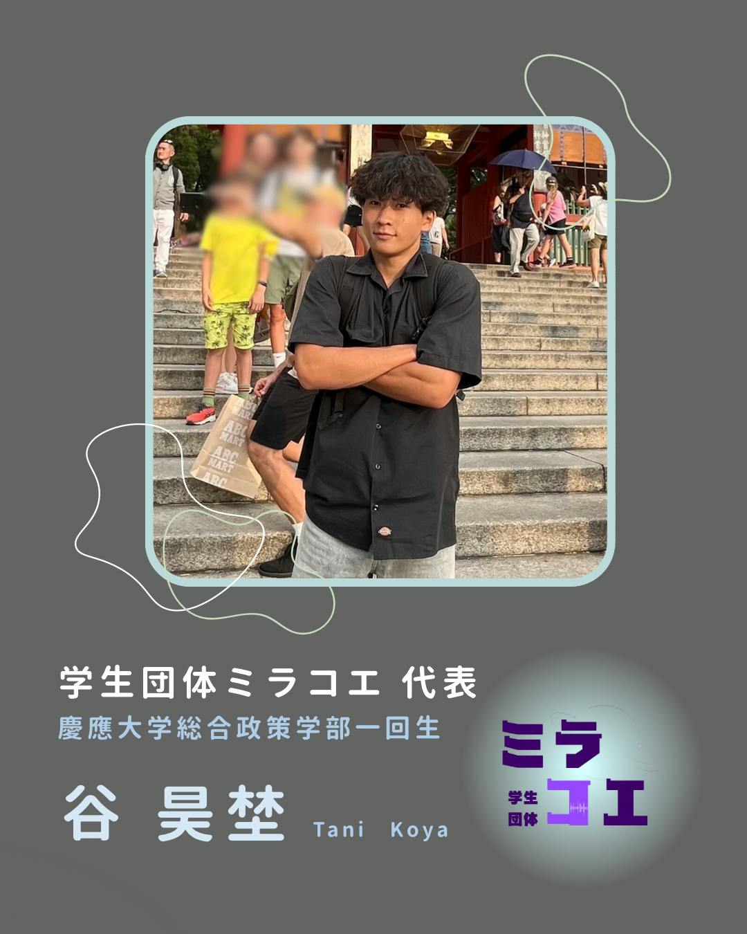 改めまして、学生団体ミラコエ代表の谷昊埜です。