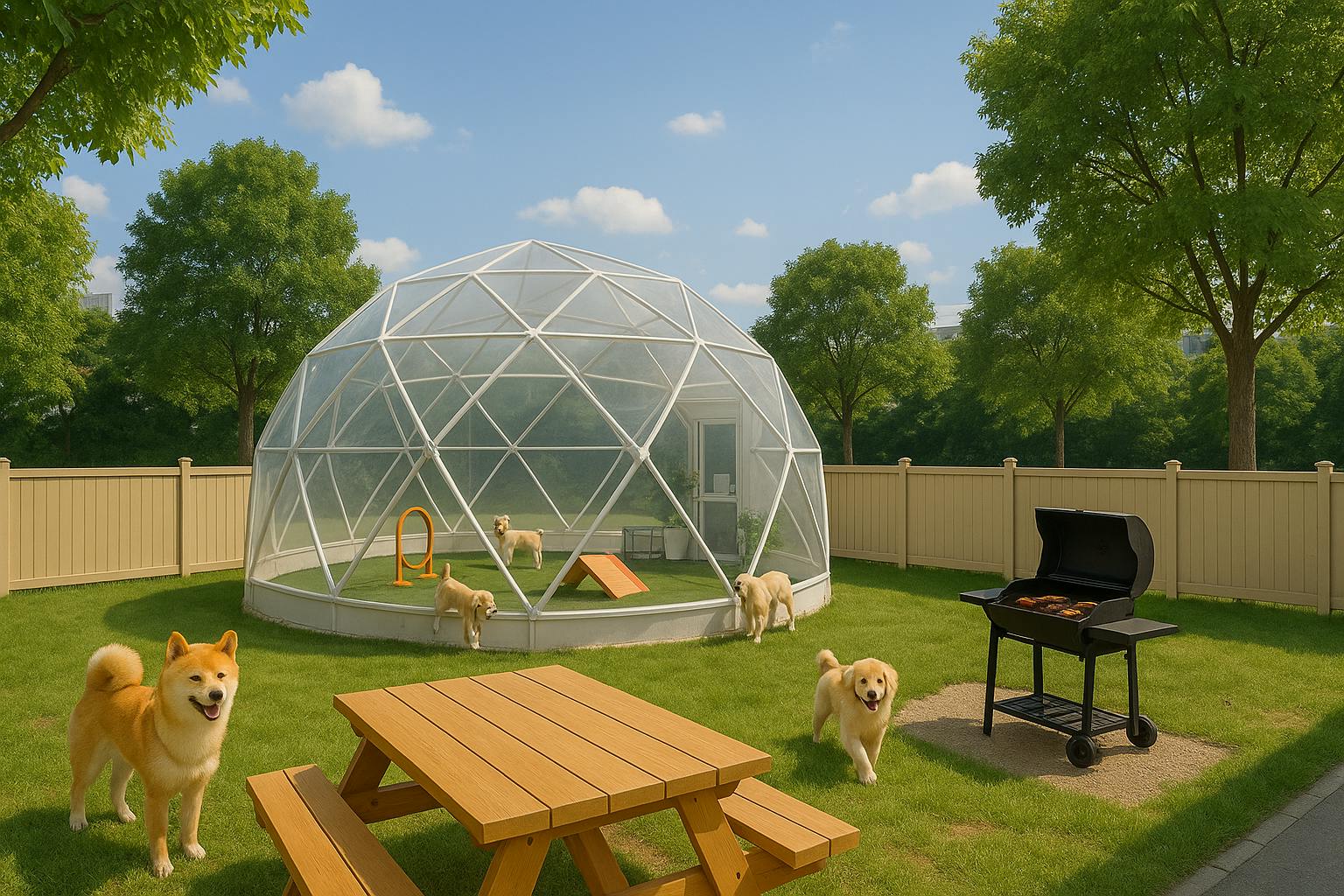 具体的には、アクセスの良い広い土地で、グランピングドームを使用したドッグランを計画しています。中には柔らかい芝生やゴムチップを敷き、空調を完備する予定です。小窓も作り通気性の問題も心配がないよう計画しています。しかし、多くの資金が必要になります。このクラウドファンディングが成功次第、すぐにプロジェクトを開始できる準備を整えていきます。