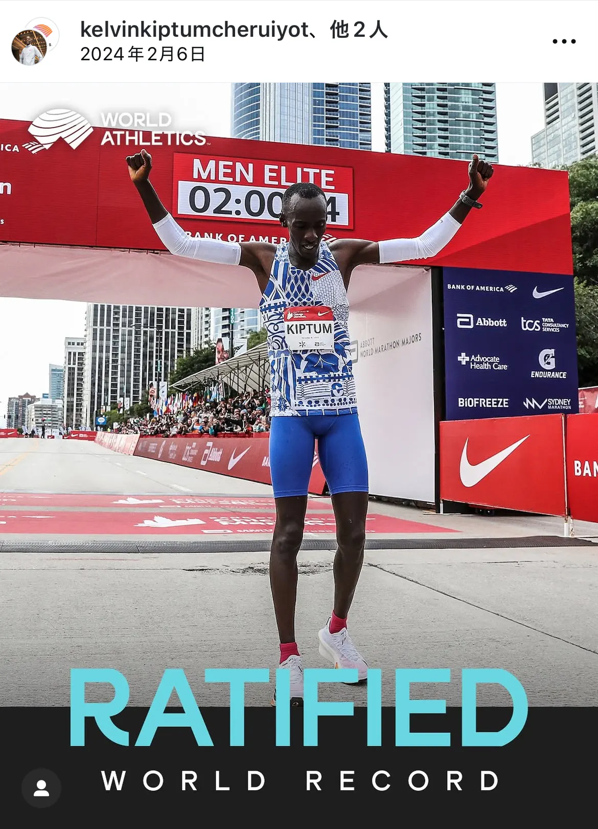 元マラソン世界記録保持者エリウドキプチョゲ選手(キプチョゲ選手のインスタグラムより)
