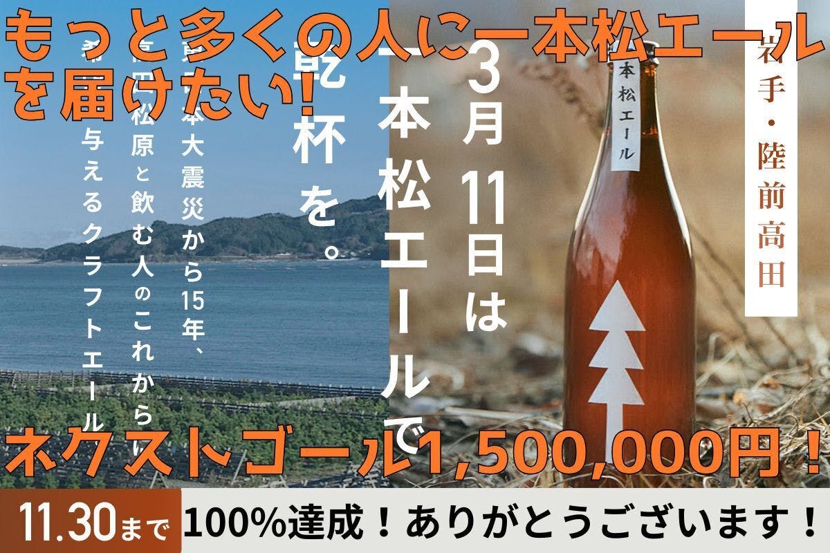 2025/11/26 11:21おかげさまで100%達成しました!支援と応援していただいたみなさま本当にありがとうございます!東日本大震災をきっかけに誕生した一本松エールは家族や仲間と飲みながら震災を思い出してもらうこと、そして次に起こるかもしれない災害に備えて避難先や連絡方法などを話し合うきっかけを作りたいという願いが込められたビール。さらに売り上げの一部が陸前高田市の観光名所「高田松原」にあった松林(奇跡の一本松を残して全て流失)の維持、管理を行うNPO法人高田松原を守る会の活動資金として寄付されます。ビールを飲んで陸前高田を応援することができます。オリジナルの一本松ビールが2012年に誕生し、2021年から陸前高田マイクロブルワリーで醸造が始まりました。東日本大震災の記憶とこれからの災害に備えるためにもっと多くの人に一本松エールを届けたいです!残り5日間ですが目標は高くネクストゴール150万円!3/11は未来を見据えて大事な人と乾杯しましょう!プロジェクトは11/30まで! もっと見る