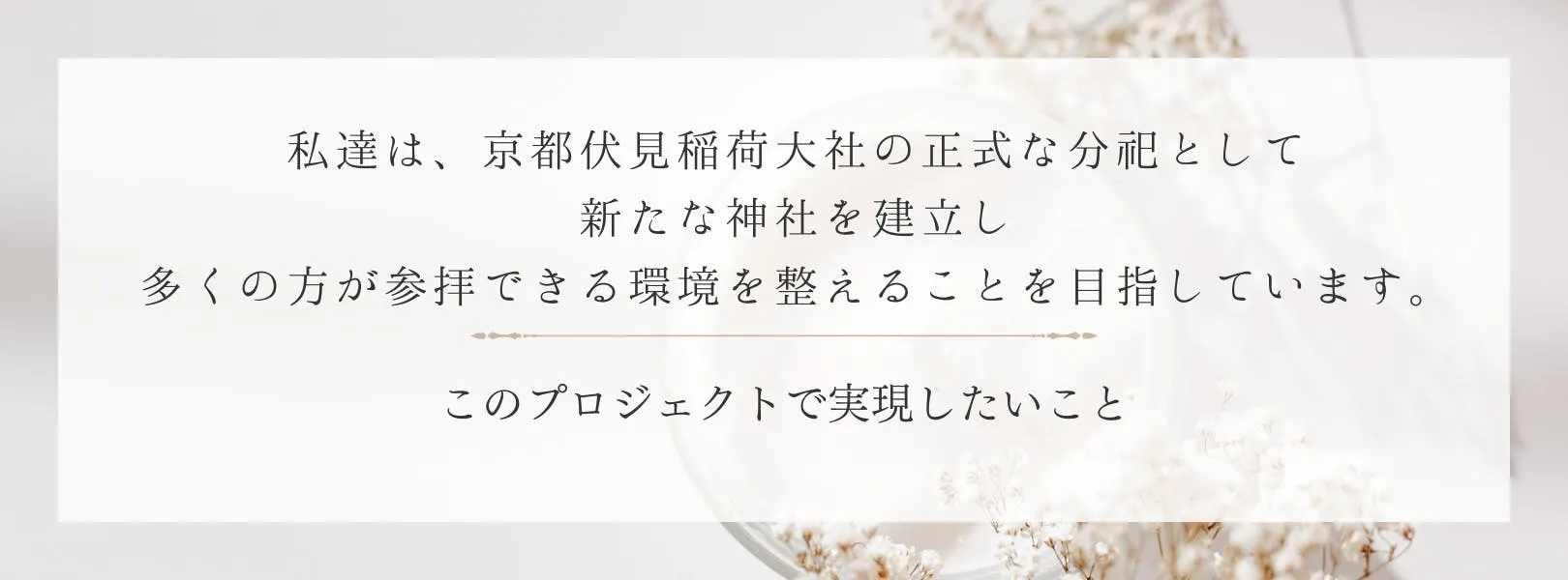 私たちは、京都伏見稲荷大社の正式な分祀として、新たな神社を建立し、多くの方が参拝できる環境を整えることを目指しています。