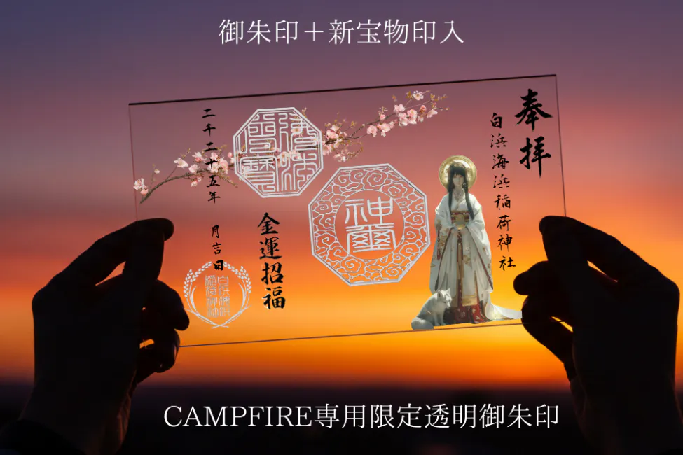 2025/09/14 07:44御支援頂きありがとうございます。御朱印の制作は現在、試し印刷が上がってきたところです。今回印刷業者が変更になり、下絵の調整からとイチからの打合せでスムーズに進まない事が数多くあります。素材の厚みが大幅に変更になった事で起きた印刷濃度調整の困難なかなか今までの濃度と同じ印刷を。。。と言う事ところが上手く仕上がらず。透明御朱印の厚みが良い雰囲気を出してはいるのですが、もう少し濃度がほしい状態です。試作にも限界があるかなあと思い始めた今日このごろです。さて最新プロジェクトが残り11日!皆様の継続的御支援のおかげをもちまして遂に外宮誕生のご報告が出来る運びとなりました。限定透明御朱印に支援して地鎮祭にご参加ください和歌山県白浜の海を望む高台にて、伏見稲荷大社分祀 白浜海浜稲荷神社 外宮の土地を正式に確保いたしました。駐車場も15台分整備予定で、海と自然に囲まれた素晴らしい環境です。地鎮祭へのご案内建立に先駆け、地鎮祭を執り行います。限定透明御朱印をご支援くださった方々には、特別に 地鎮祭へのご参加、および 限定配信でのご視聴 にご招待いたします。支援者様だけの特典ご支援者全員のお名前を「地鎮祭支援者名簿」に記載記念品を多数ご用意神楽団による神楽舞を奉納特別な体験もご用意地鎮祭では、土地を清めるために 大量の水晶を敷き詰める工程 にご参加いただけます。「見る」だけでなく「共に築く」── ご支援者様と共に歩む神社建立の歴史的な一歩となります。プロジェクト終了まで 残り11日。ぜひこの特別な機会をお見逃しなく。プロジェクトページはこちら https://camp-fire.jp/projects/854862/viw もっと見る