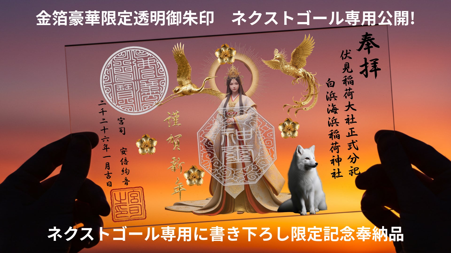 当神社はその御神託を受け、「伏見稲荷大社正式分祀」として設立されており、神意に従い、透明御朱印という現代の“かたち”で信仰を継承しております。