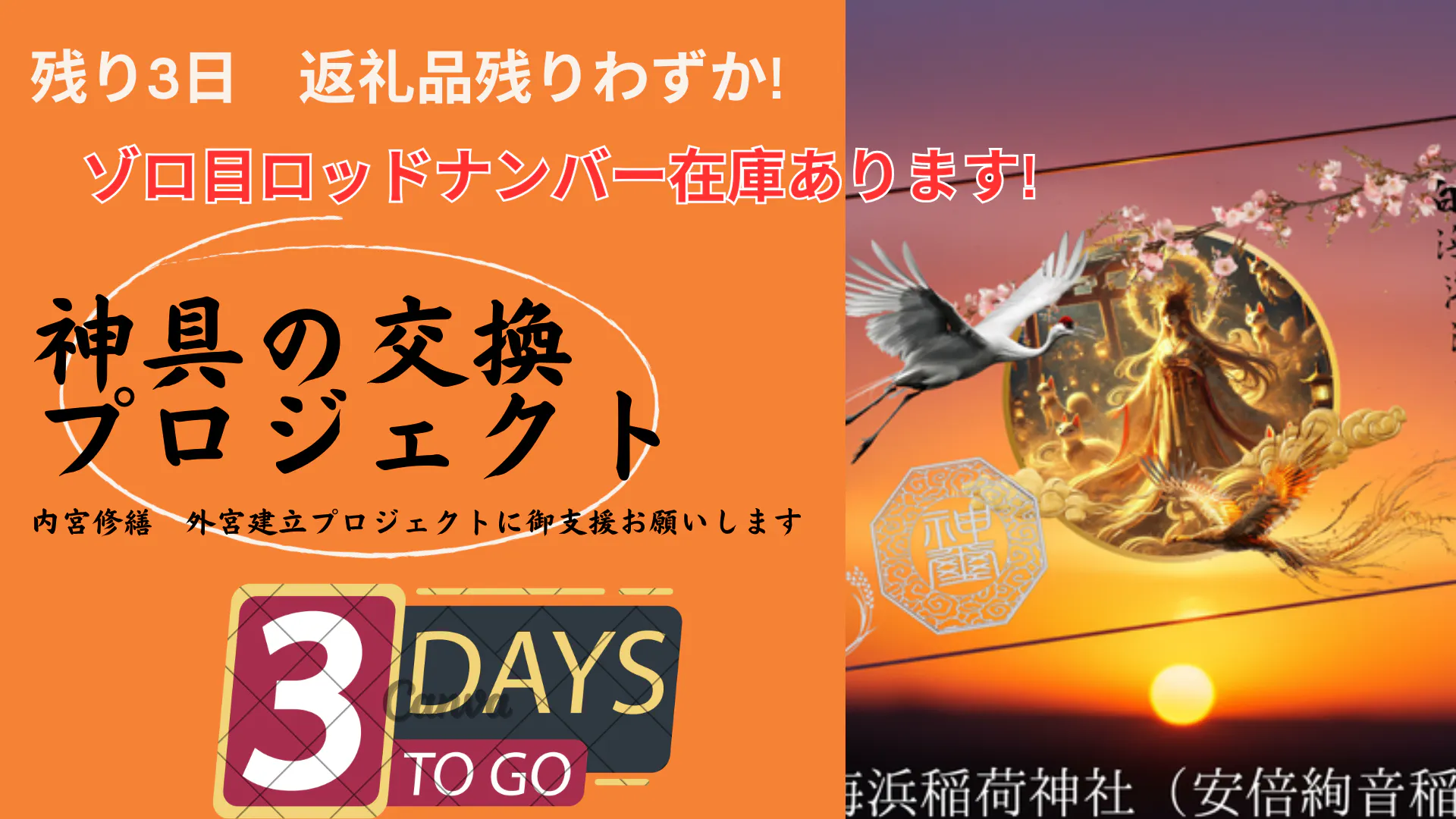 神具交換という大切な役割を果たすために、あと一押しのご支援が必要です。