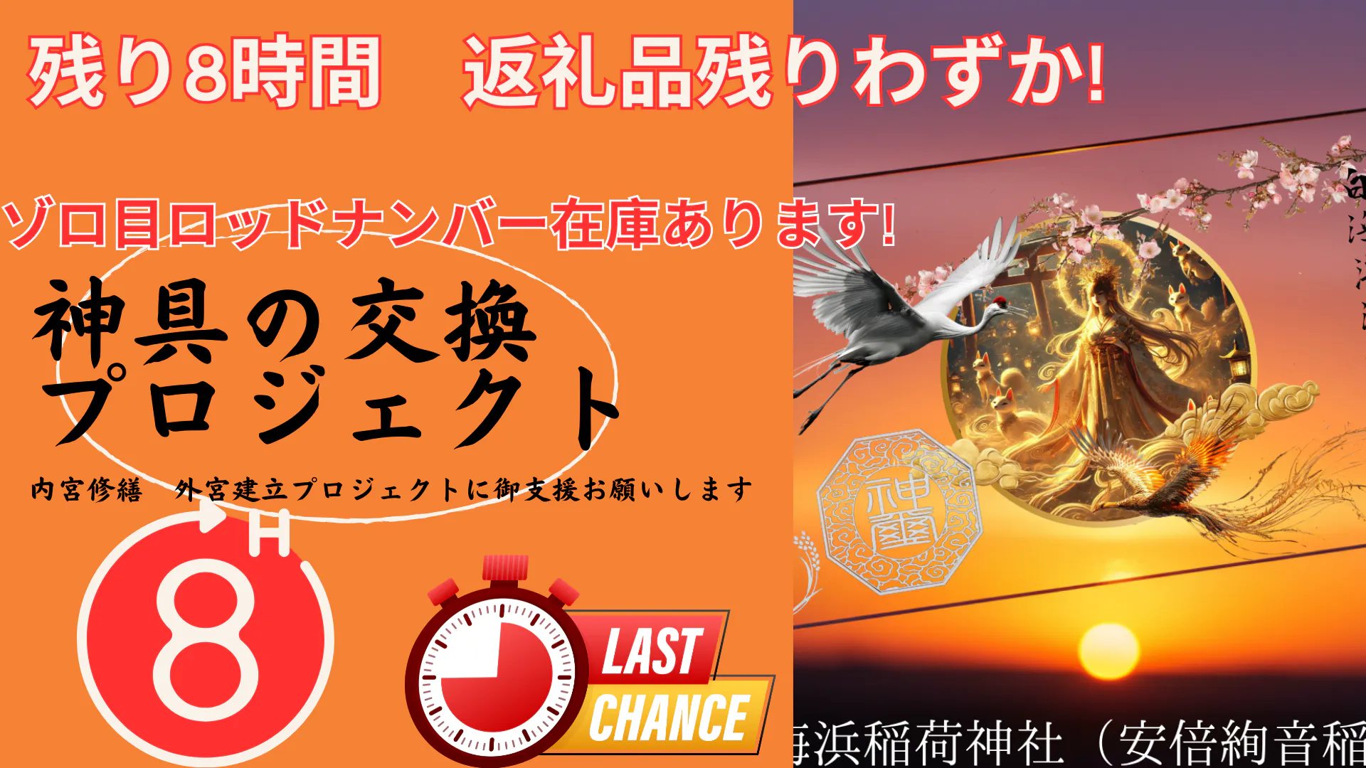 最後の8時間、稲荷神社の誇る限定透明御朱印をぜひご支援ください。