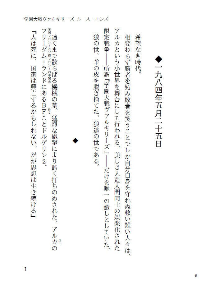 新作小説同人誌『学園大戦ヴァルキリーズ ルース・エンズ』本編の