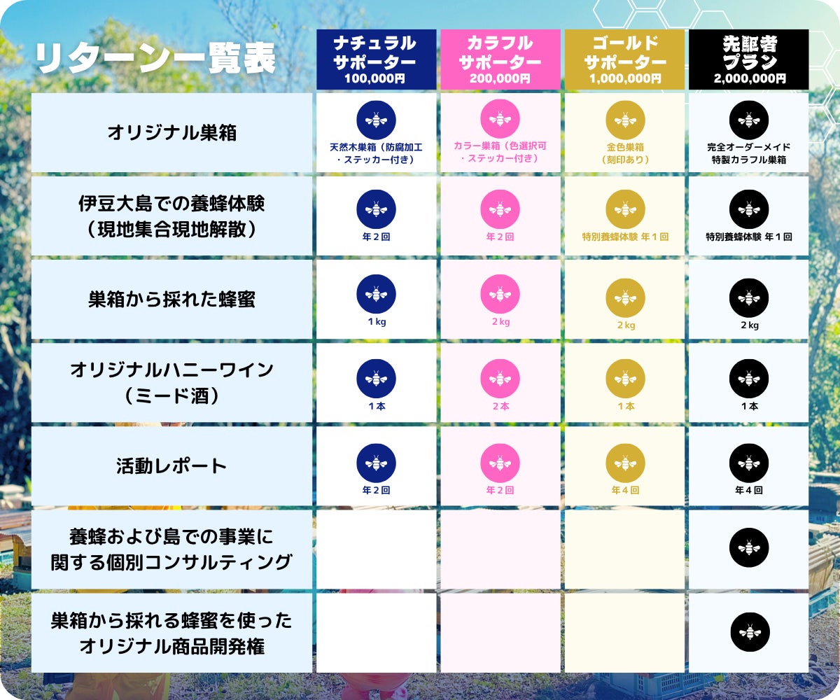 そして、その巣箱から採れた蜂蜜や、ミツバチたちの成長過程、四季折々の島の風景をレポートとしてお届けします。まるで、島に第二の家を持つような感覚を味わっていただけるでしょう。