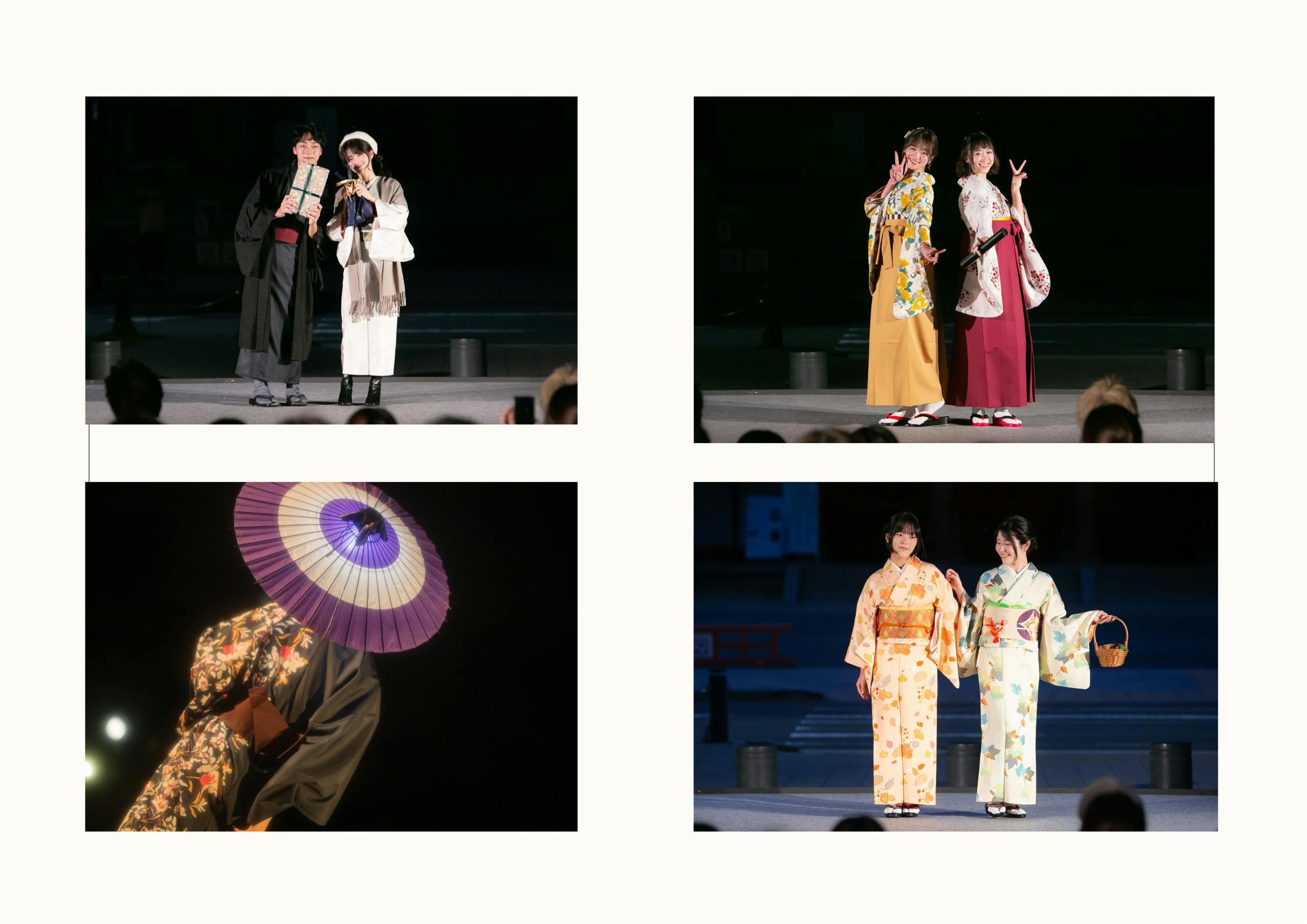 私たち「京都着物企画」(通称:きもきか)は、2013年の設立以降、「着物を中心とした日本文化の魅力を若者目線で解釈し、発信する」という理念の下、着物を中心としてさまざまなイベントを開催してまいりました。近年行った主なイベントは以下の通りです。