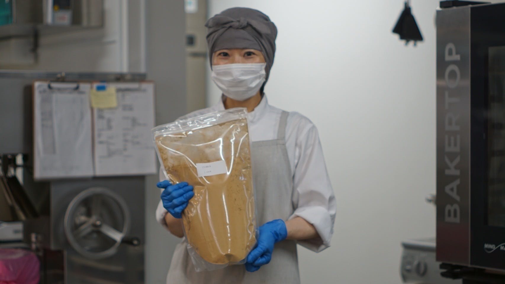 前回はナス由来の成分によってクッキーがカチカチに…。吸水率が高いことが原因のようで、配合の見直しが必要でした。