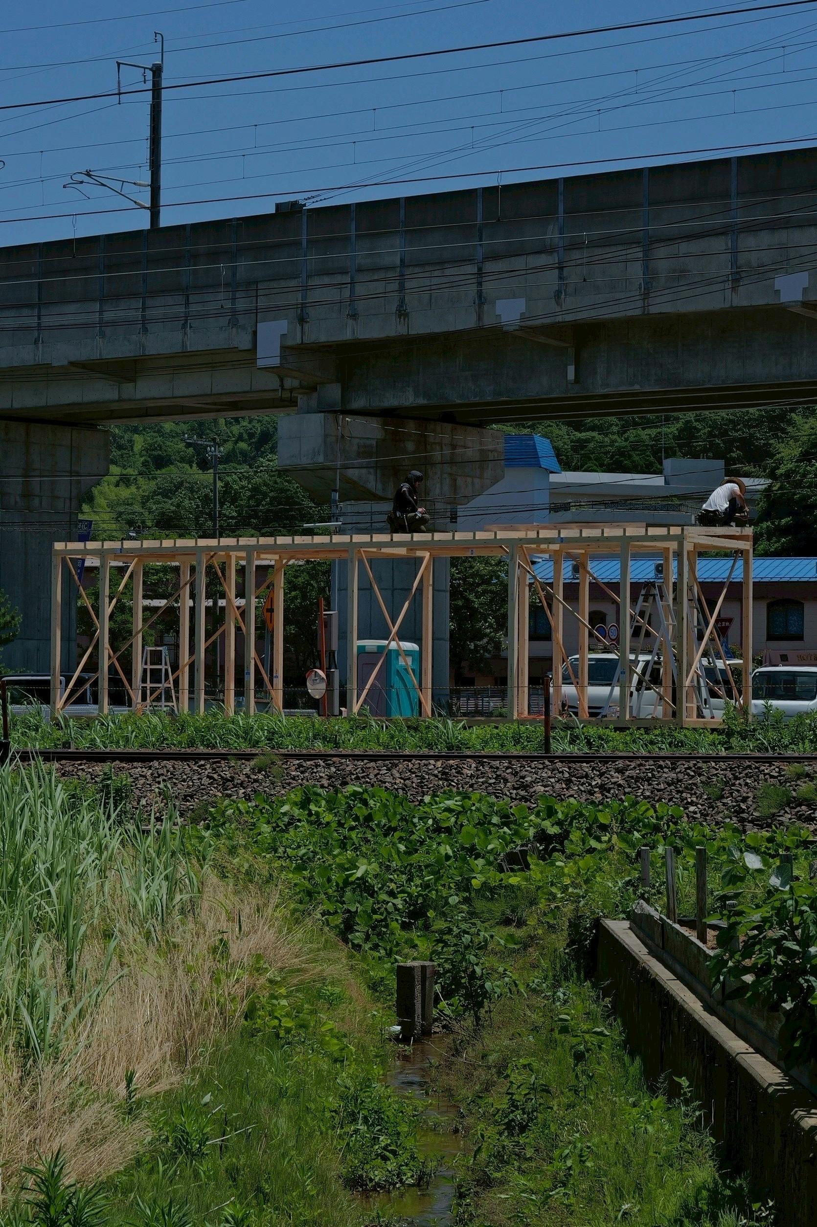私がお願いした施工業者さま(OLUOLU LIFEさま)は、ふつうはシャーシと上物(家やお店)が一体化していますが、今回は別々で製造。 松波で建設場所の整備、金沢市内でまず木造で店舗を建設し外壁はガルバリウム鋼板、そして愛知県で制作したシャーシが別途届く。