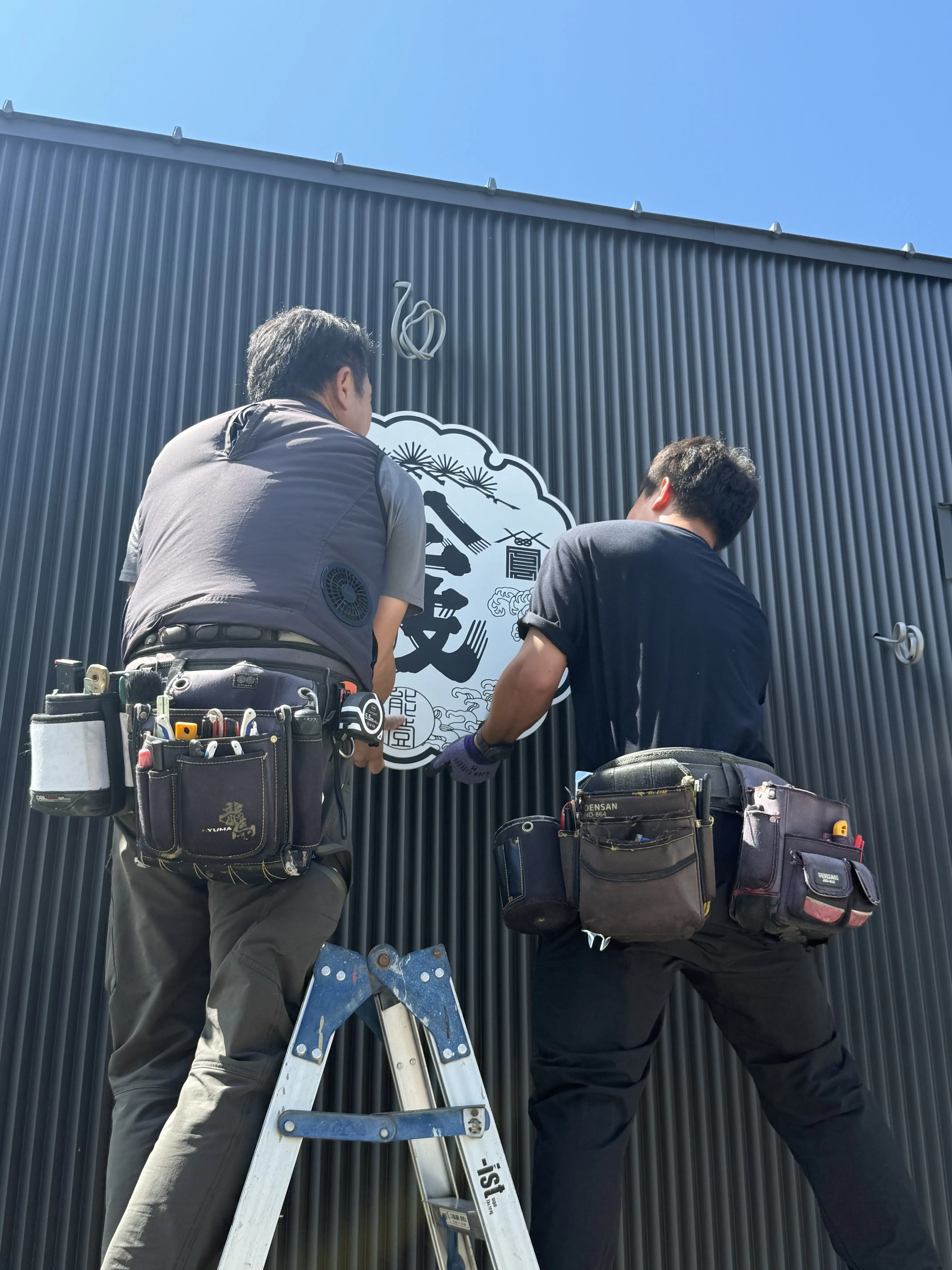 先日の大雨で延期した、トレーラーハウス松波の看板設置が最高のお天気の中で行われております。