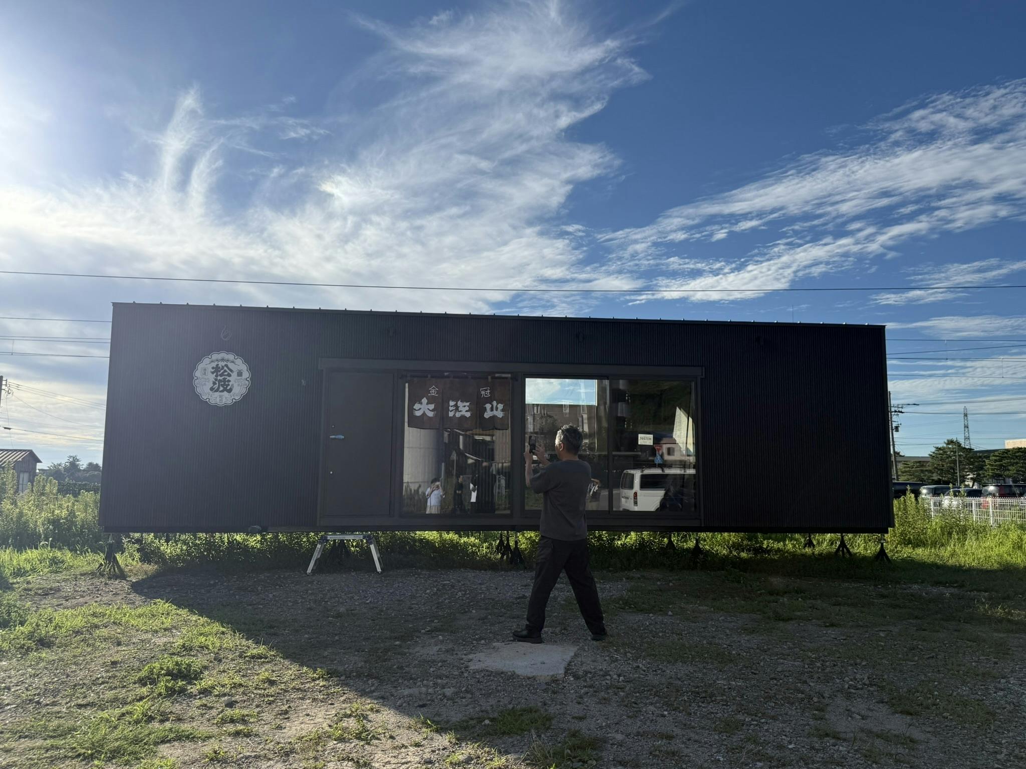 金沢市内の建築現場で、施工主でトレーラーハウスプロデューサーのOLUOLU LIFE様、設計士 トイットデザイン様、職人 カナイ建築様、光の調節 かあてんや様 大集合で細かい造作について打ち合わせでした。
