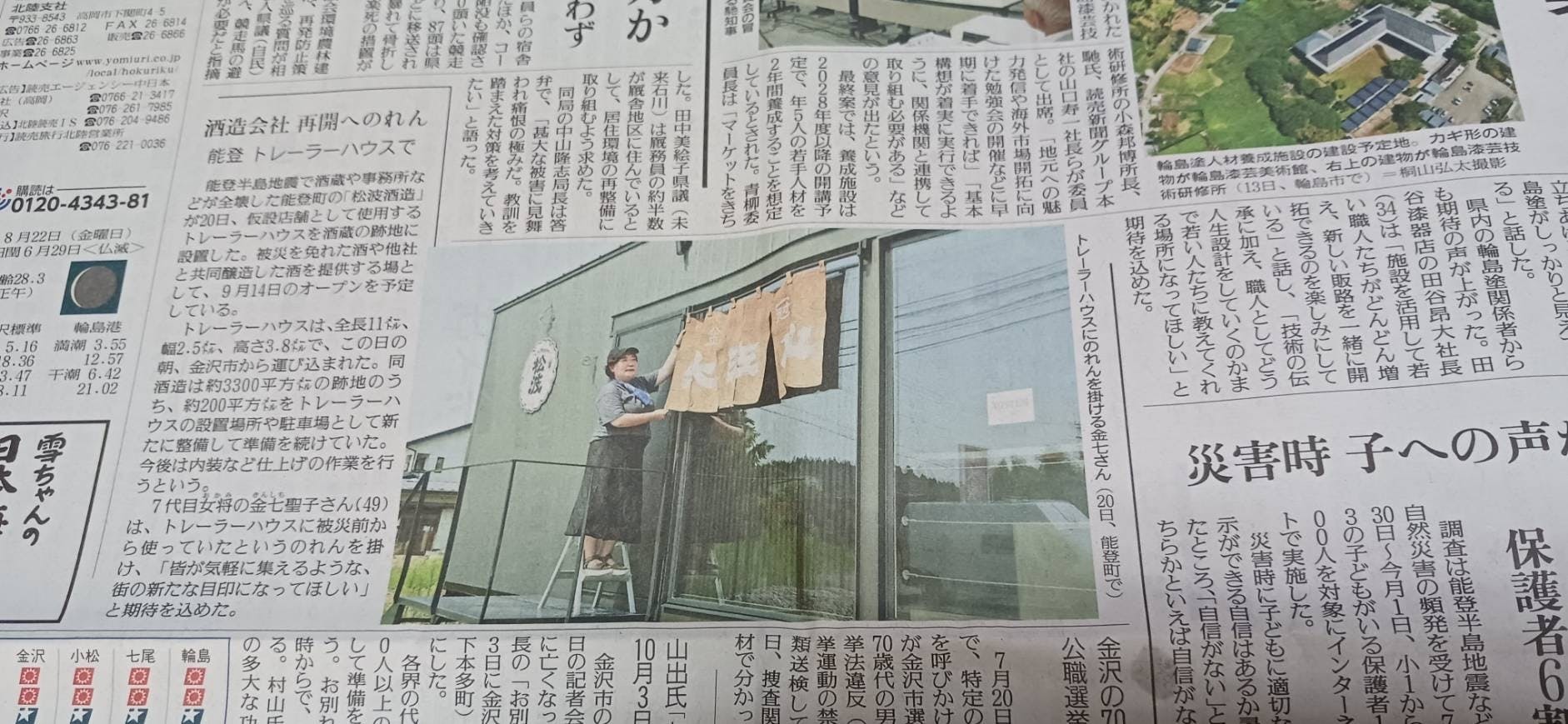 ・NHK金沢放送局 「被災の酒造会社 仮設店舗営業へトレーラーハウス設置 能登町」