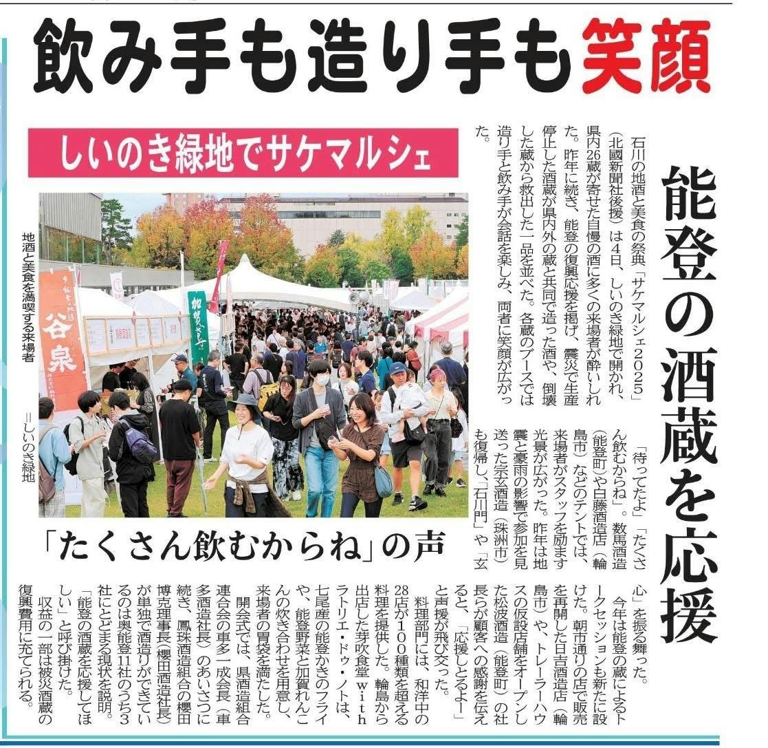 当日は石川県で開催 地酒と美食の祭典「サケマルシェ」に出店し、たくさんのお客様と乾杯、お酒をお届け、たくさんのお話ができました。