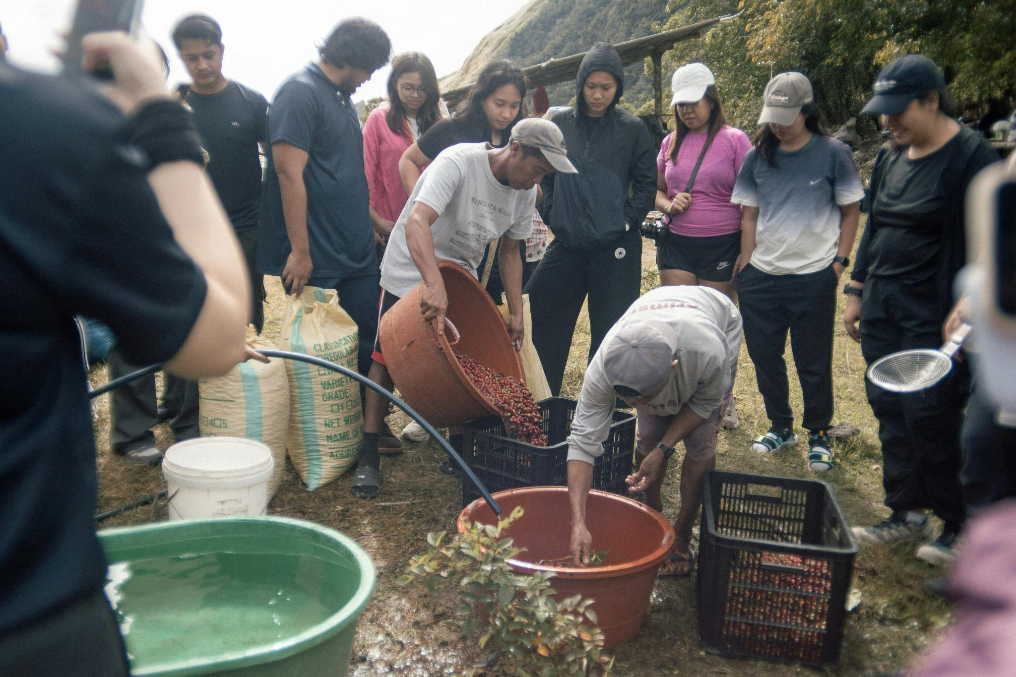 12人で2時間かけて採れたのはたったの30キロ強でした。ここから乾燥させると何キロのコーヒーになるかご存じですか?