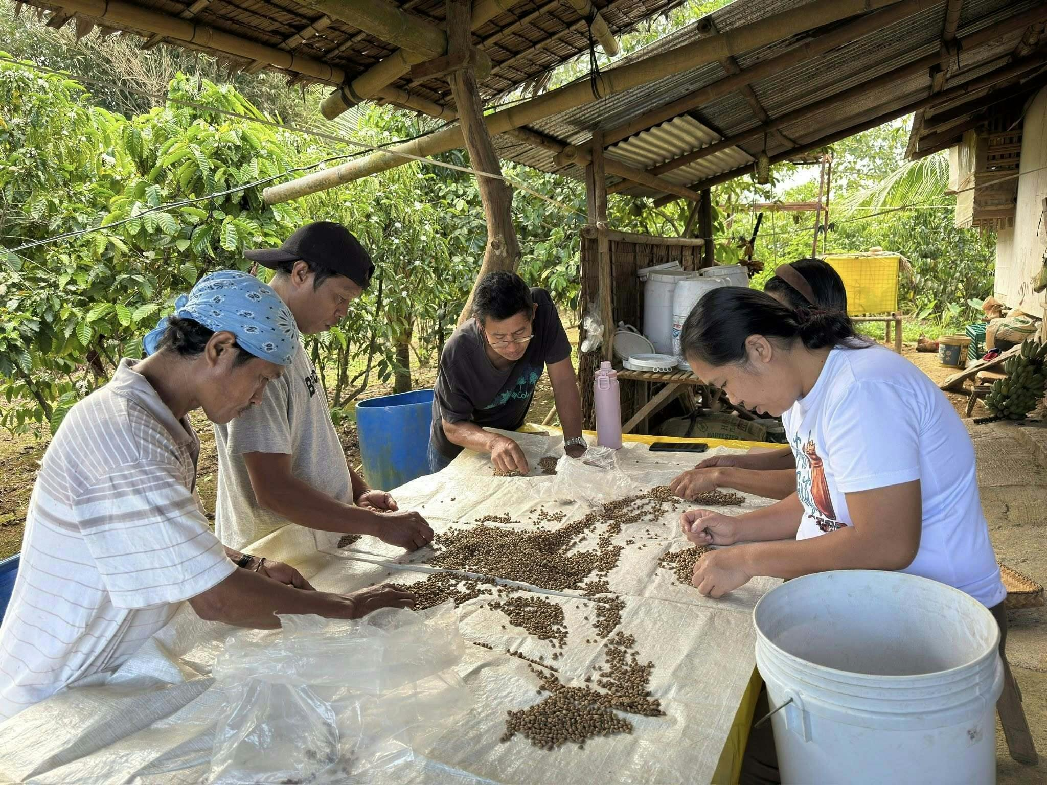 ここで5月にマニラで行われるフィリピン・コーヒー品評会(PCQC)に出すために、農家さん自らが丁寧な選別作業を行います。