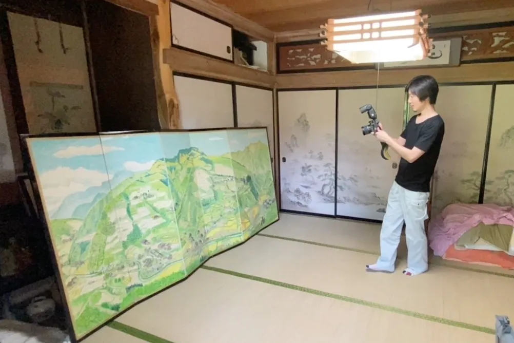 屏風絵をデータ化するためにスキャンしている様子(地元企業との協働)