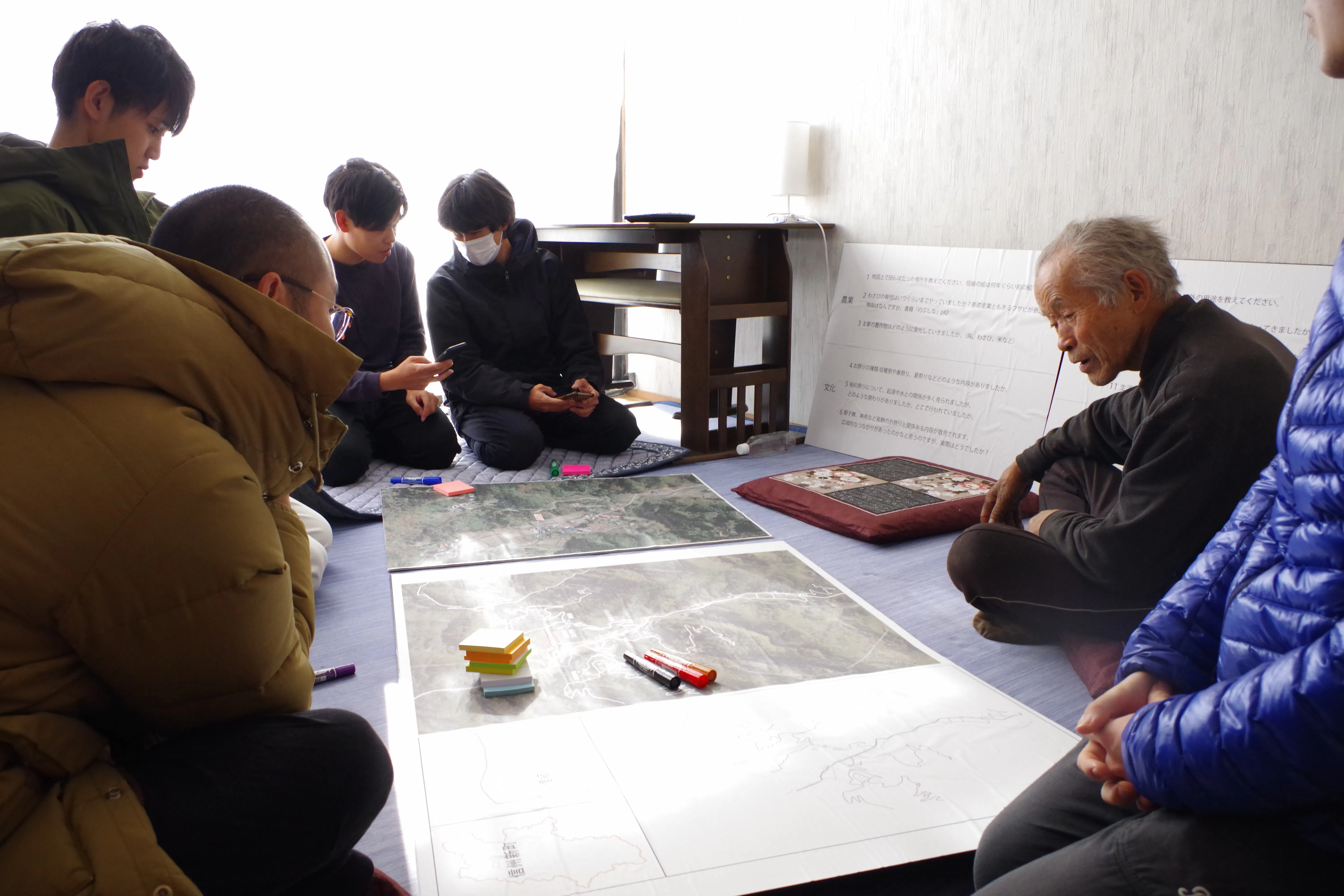 信級の暮らしを体験すべく、空き家での滞在を通して、地域の行事に参加や、学生主催による交流イベントの開催を通して、地域内外の繋がりを育んできました。さらに、地元の企業との連携により、GIS(地理情報システム)を活用したイベントも実施し、地域資源の可視化と新たな魅力の発信にも取り組みました。