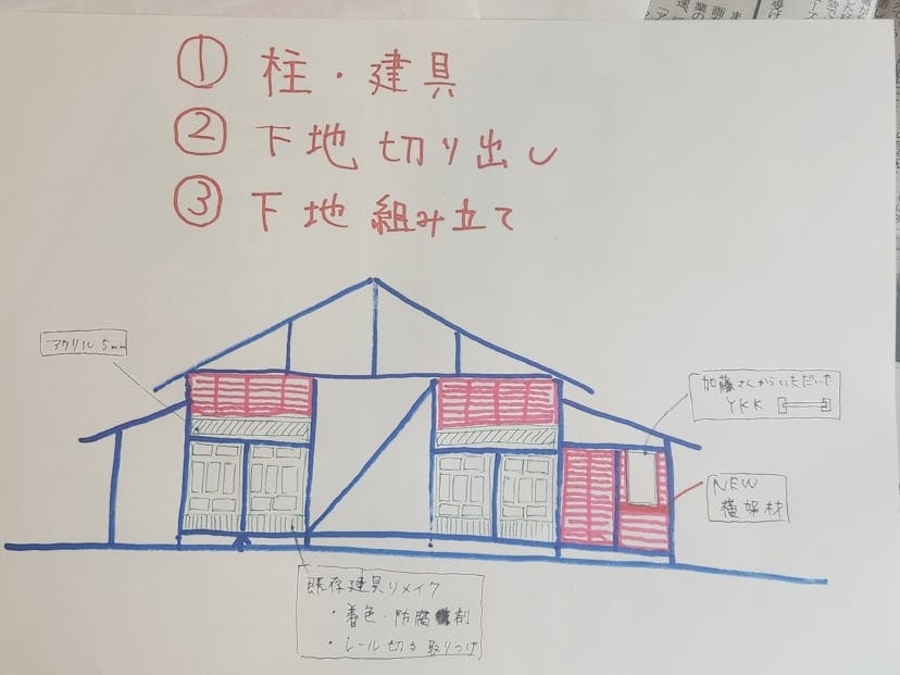 大人数での作業となるので、設計図を書き作業目標を共有して作業していきます!