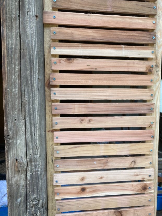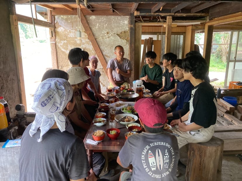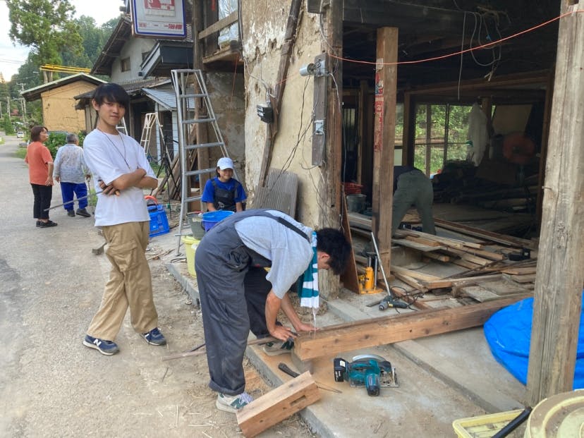 材料調達では地域内の資源循環を目指しています。建具に使っている木材は、空き家の解体時に出てきた材料や集落内のいらなくなった木材を活用しています!作業していると地域の方々が声をかけてくださります。時には道具を貸していただいたり、材料をもらったり!ヒトやモノのネットワークを活用して改修を進めています。