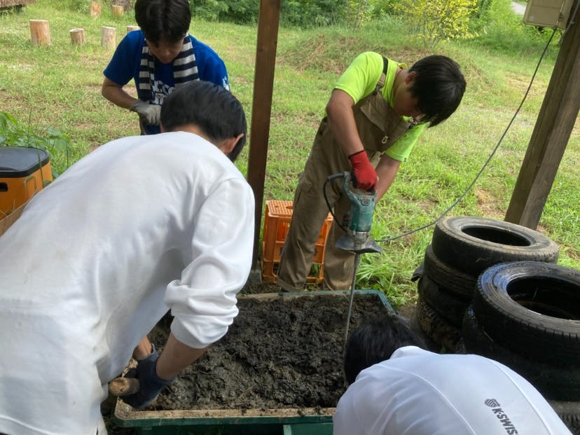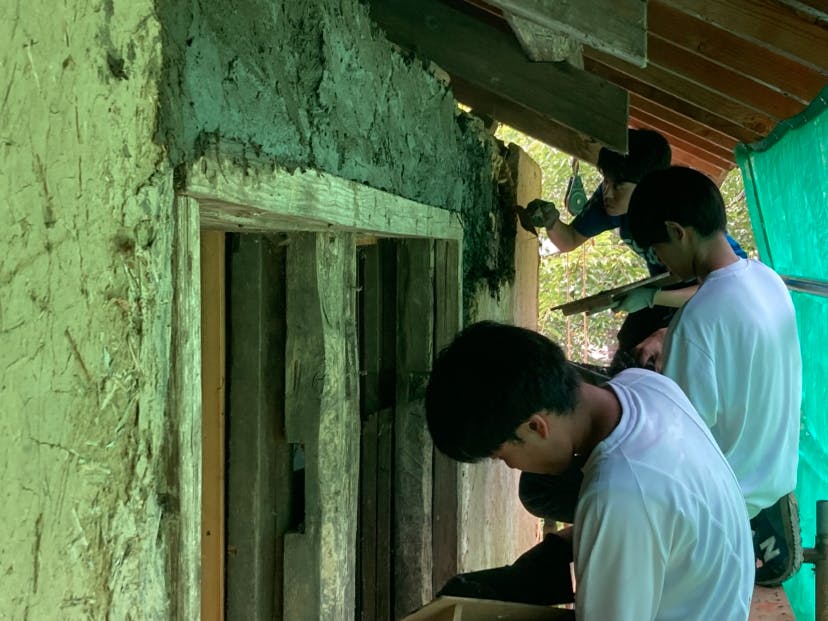 下地を完成させて、DAY3,DAY4は土壁塗り習得とBBQです。信級地区は土壁の家も多く、土壁の施工方法を知っている方に教えていただきました!