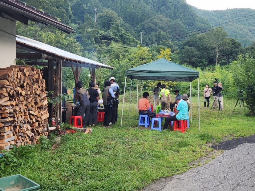 最終日は信級の山で採れたきのこを使って、きのこパーティをしました。改修を手伝っていただいた地域の方やお子さんも参加していただきました。僕たちが打った土間空間で開催です!メニューは、きのこの炊き込みご飯、きのこ入り肉団子スープ、きのこのお吸い物です。きのこ尽くし!
