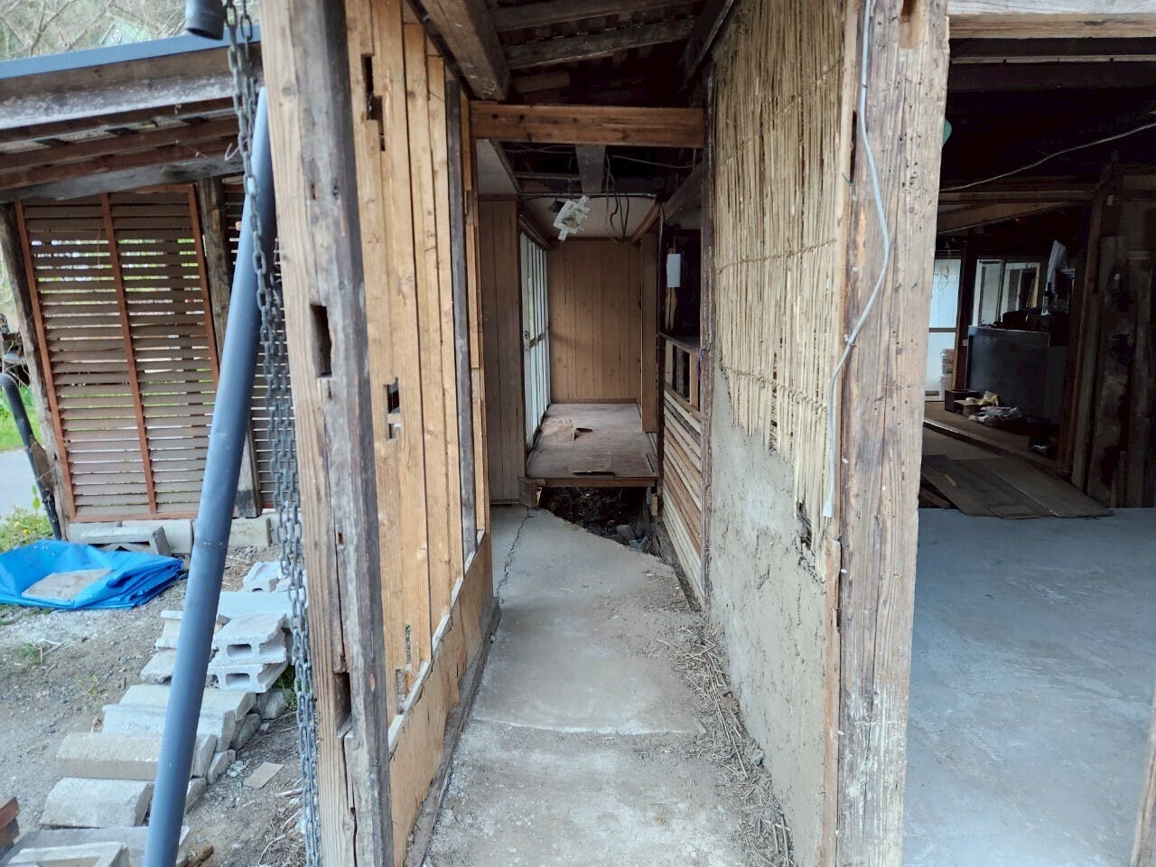 〈↑Before〉バケツがいっぱい置かれた土間や、壁にもたれかかっている資材が見えますね
