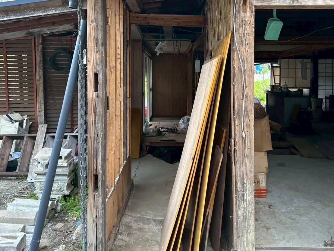 倉庫の中にコンクリで囲われた蔵のようなものがあるのですが、その中から手前に写っている大きなの樽がいくつか出てきました!おそらく、倉庫の中は味噌蔵として使っていたのではないかと推察しています。