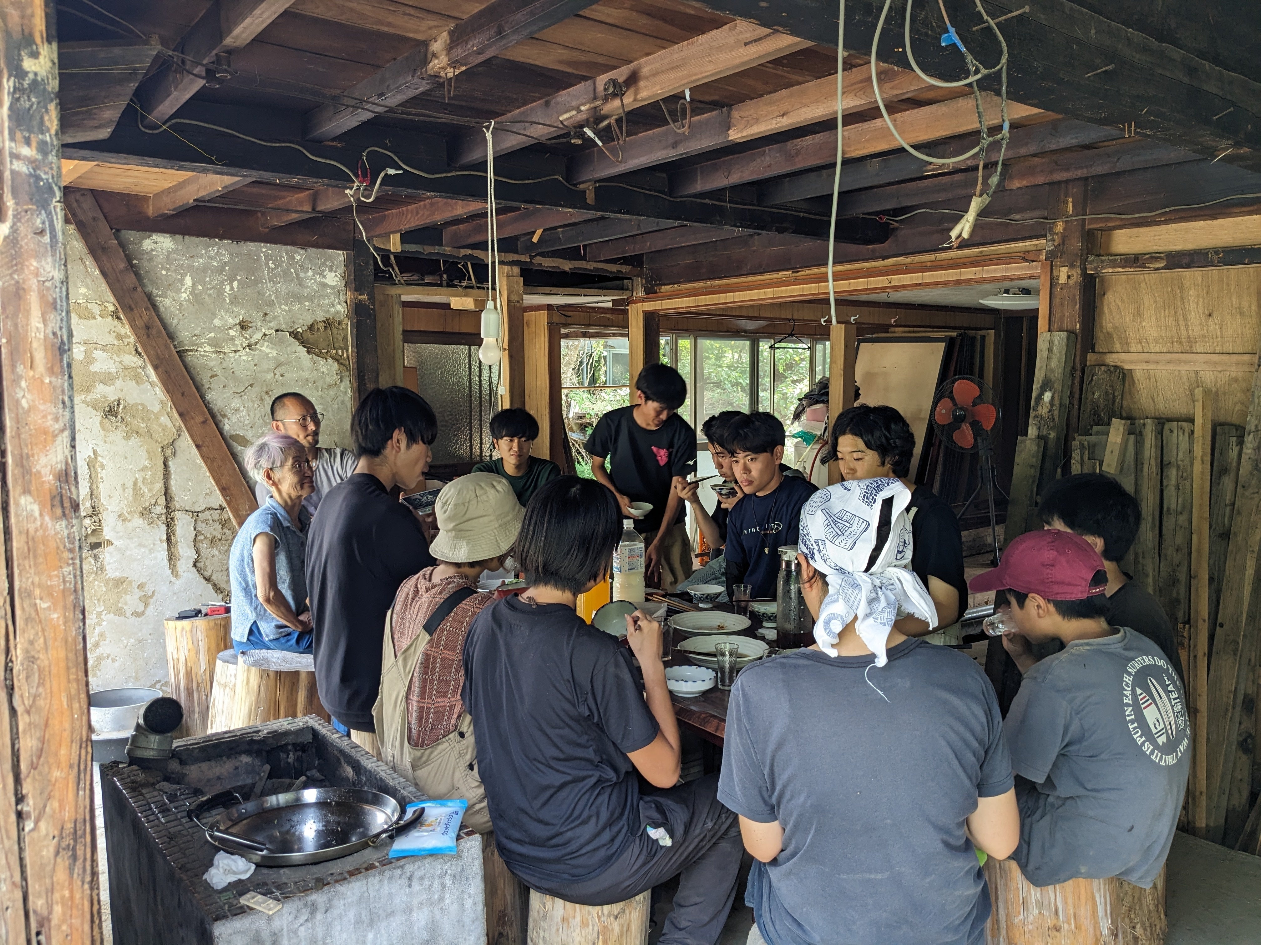 改修中の土間を活用した住民と学生の交流「きのこパーティ」