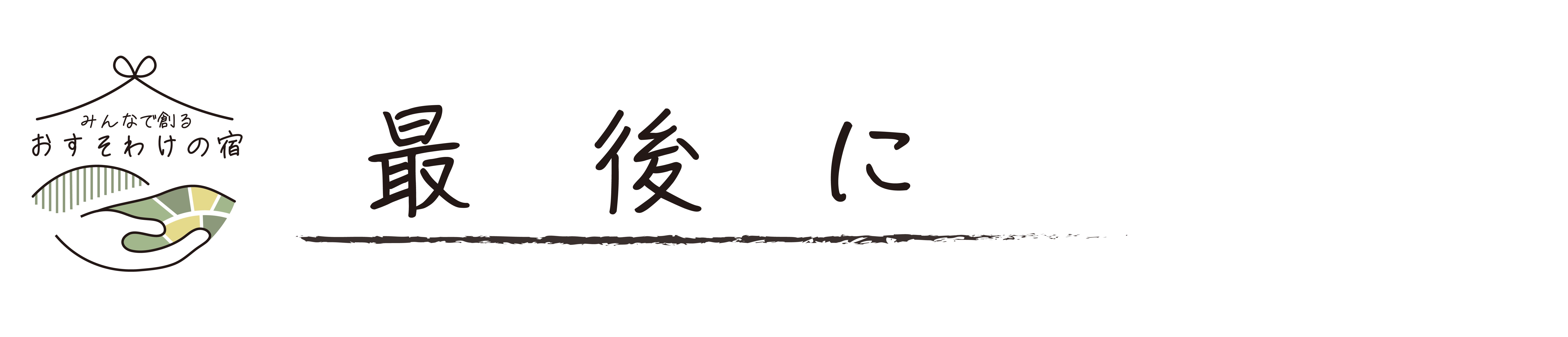 宿をハブとし、地域内外で資源の循環や人との繋がりが生まれ、今まさに“おすそわけ”が起こっており、今後はその輪が広がっていくこと思い描いています。
