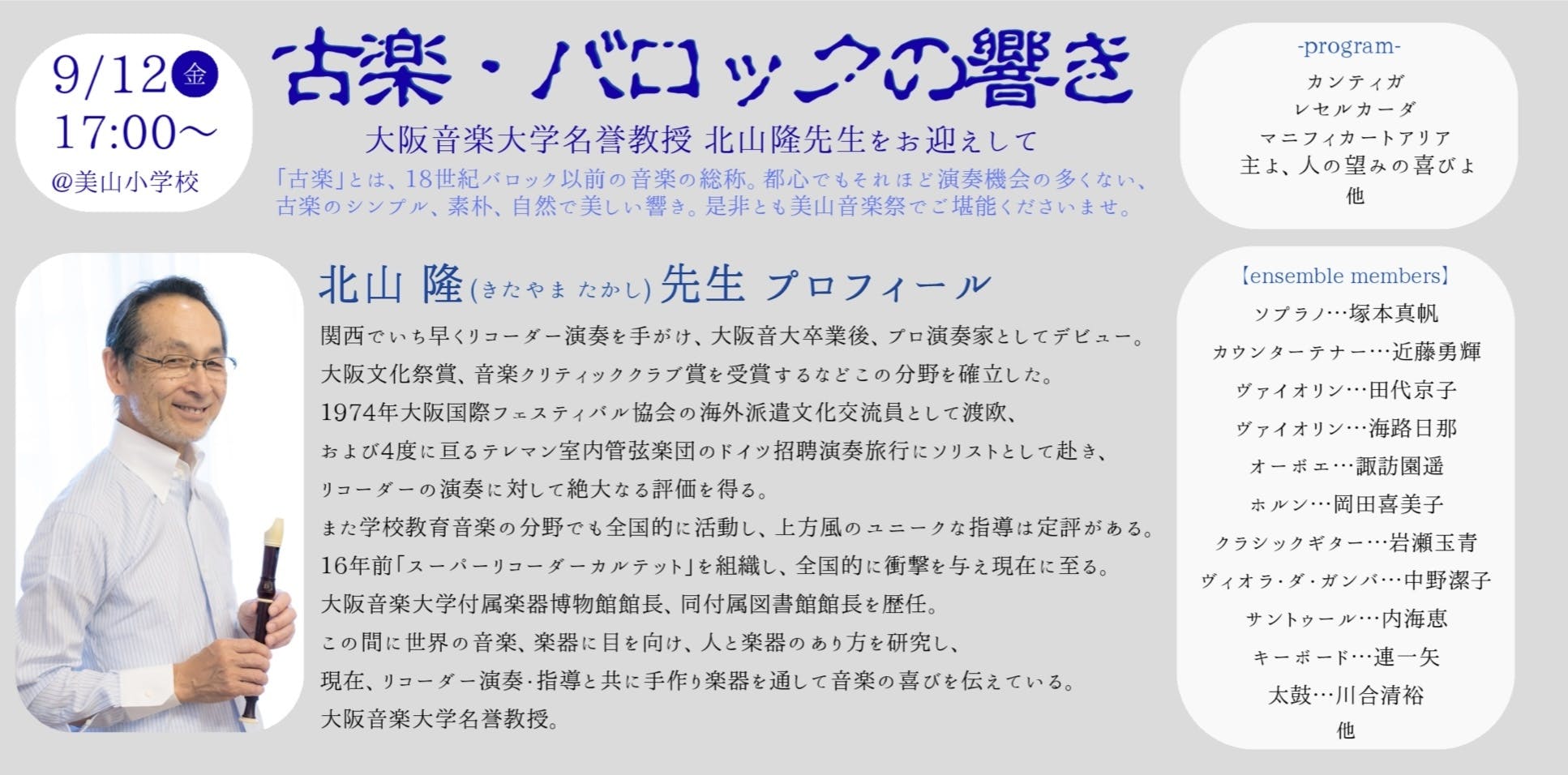 古楽・バロックの響き〜大阪音楽大学名誉教授 北山隆先生をお迎えして