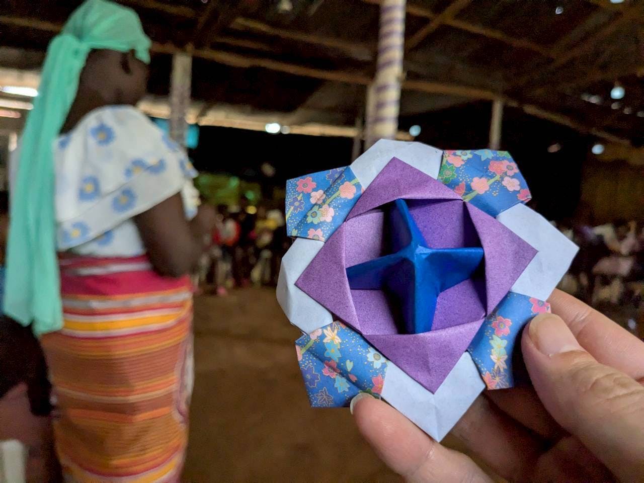 日本から持参した折り紙のコマも楽しんでくれていました。