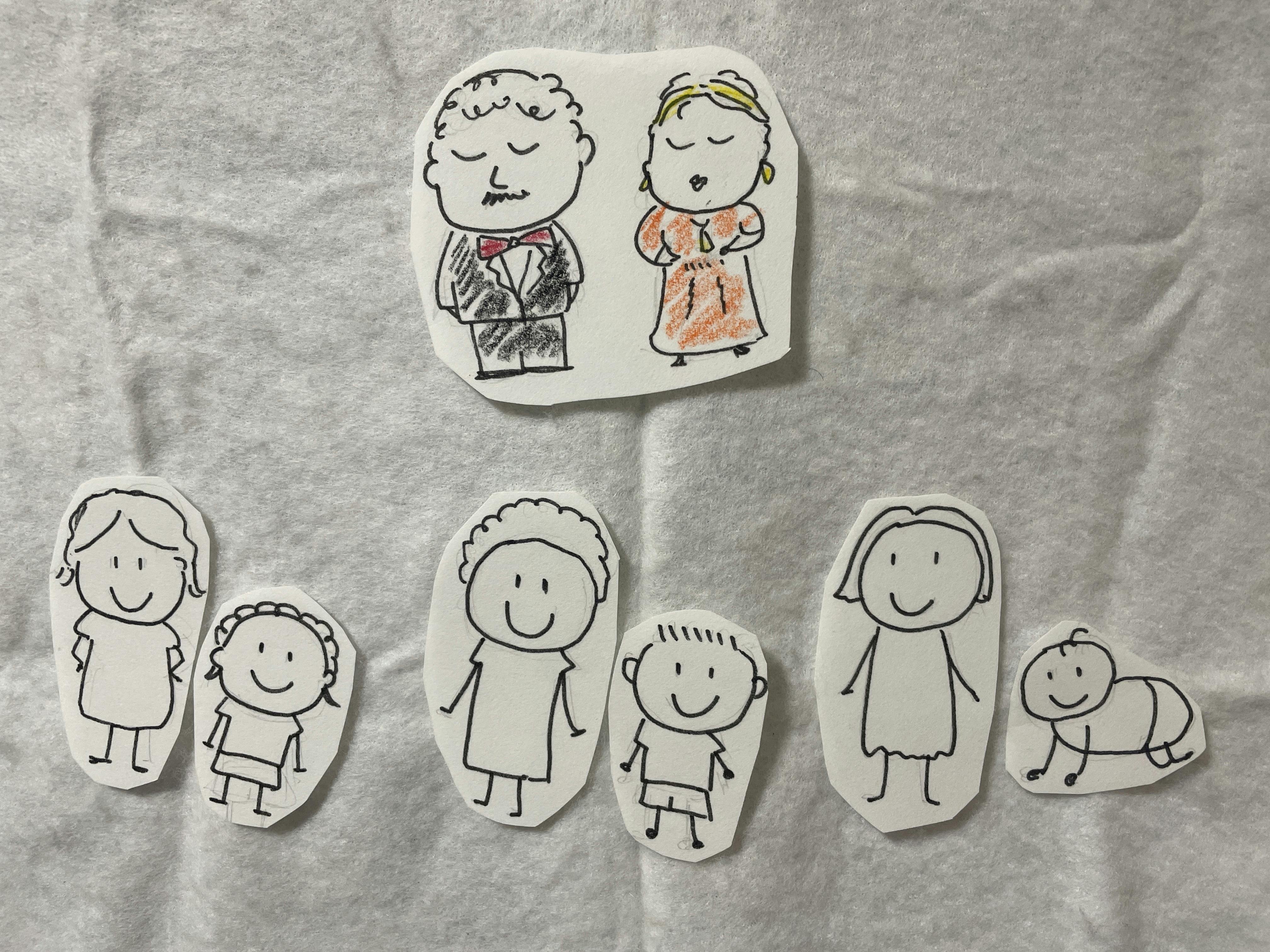 私のカタコト英語ではとうてい伝わらないので、絵と劇で伝えます!