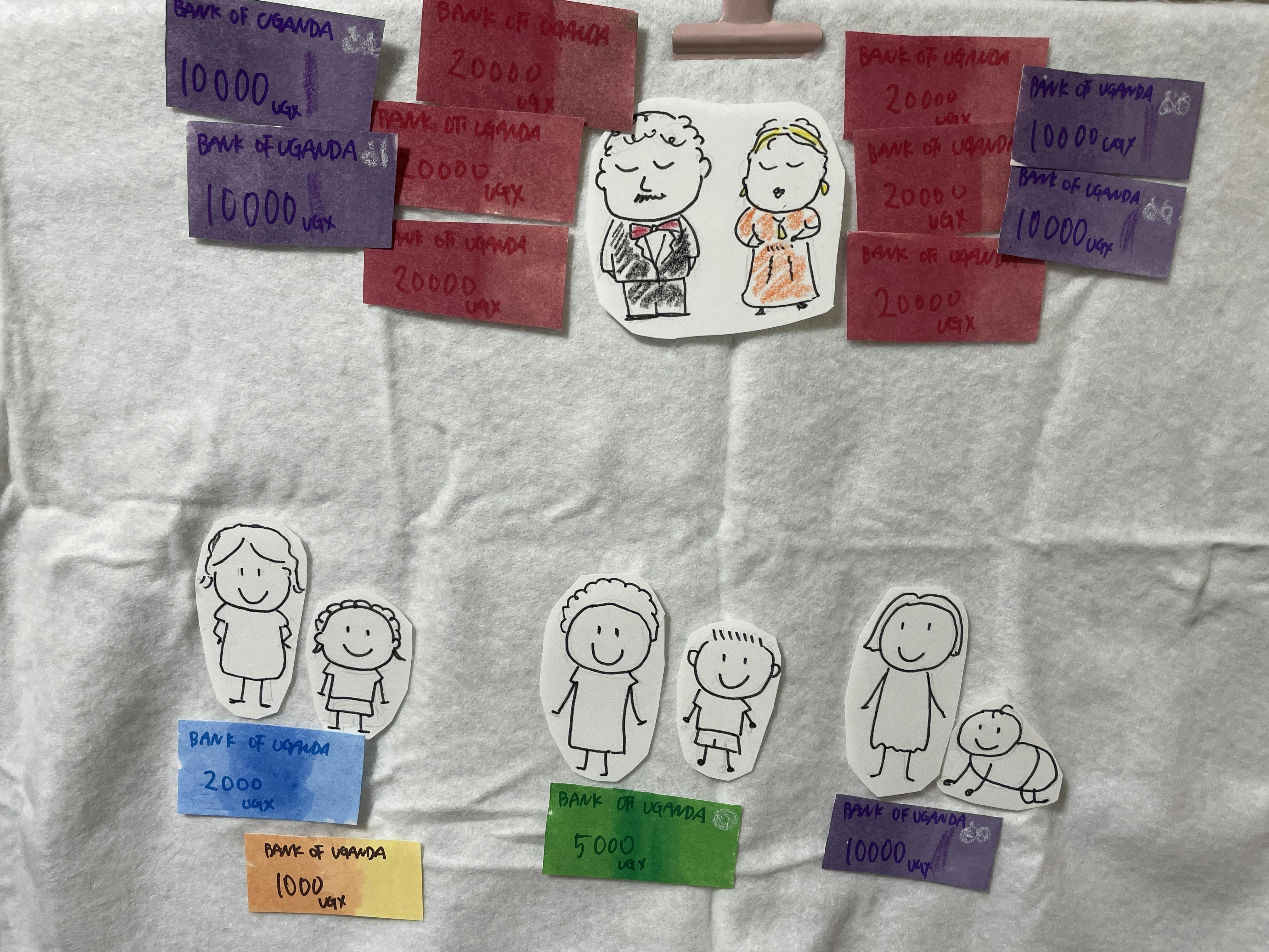 「ウガンダには、少しのお金持ちとたくさんの貧しい人たちがいます。お金持ちの人はたくさんのお金を持っています。