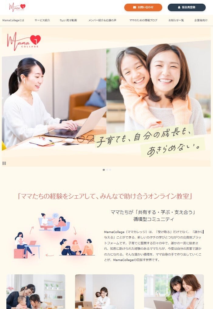「ママカレッジ」は、子育て中のママたちが同じ境遇の仲間とつながり、安心感や新たな気づきを得られる「助け合い型オンライン教室」です。ライブ配信や動画コンテンツ、参加型イベントを通じて、日々の育児の悩みや不安を共有し、孤独感を解消することを目指しています。また、ママたちが自身の経験やスキルを活かして情報を発信することで、自己肯定感を高め、社会とのつながりを感じることができます。自宅から気軽に参加できるこのプラットフォームは、ママたちが互いに支え合いながら、自分らしく過ごせる居場所を提供します。