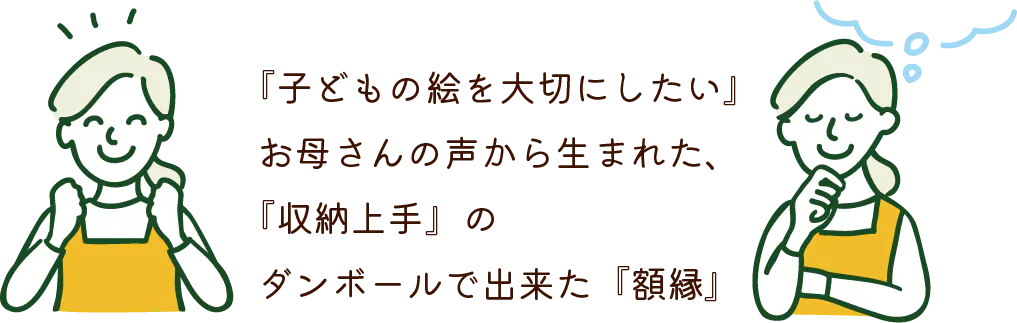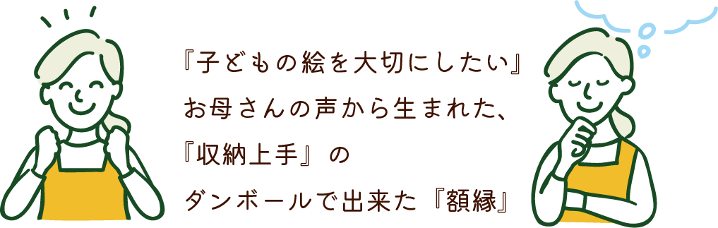 しかし、子どもたちが持ち帰ってくるたくさんの作品を、どのように保管したら良いのか、お母さんたちは頭を悩ませていました。子どもの大切な表現だからこそ、きちんと残してあげたいけれど、場所も取るし、良い方法が見つからないと感じているようです。