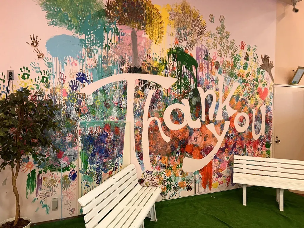 ・重傷心身障がい児向けのデイサービスの子どもたちとアシスの子どもたちが大きな布に絵を描くコラボARTイベント!