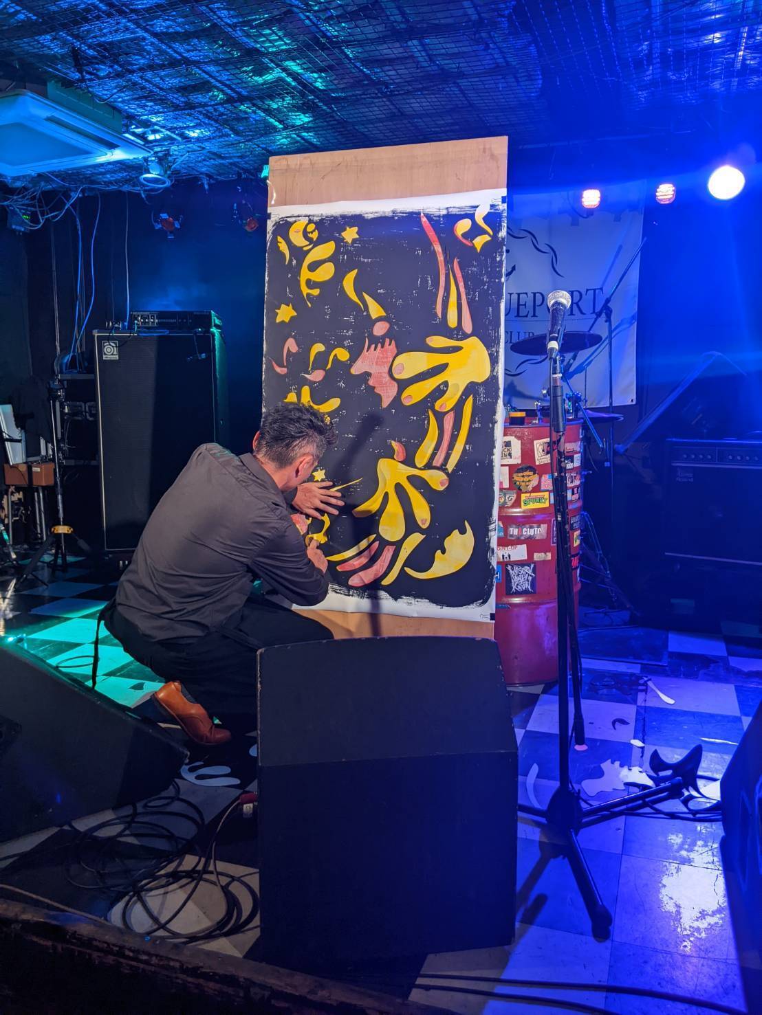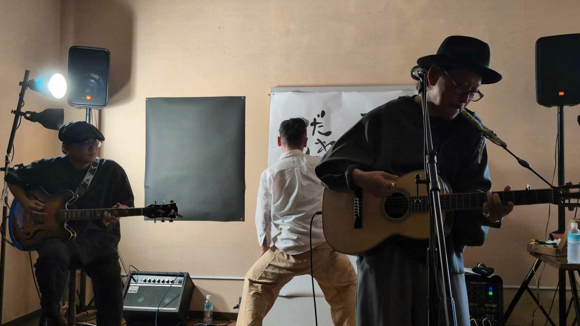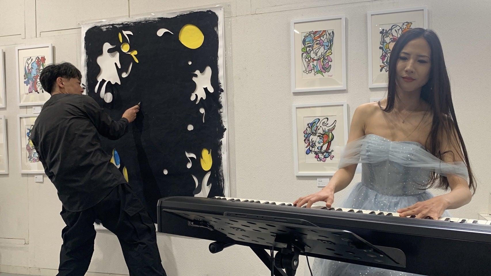 2013年より幾度もおこなってきたライブ。大きな切り絵を、様々なミュージシャンとともに
