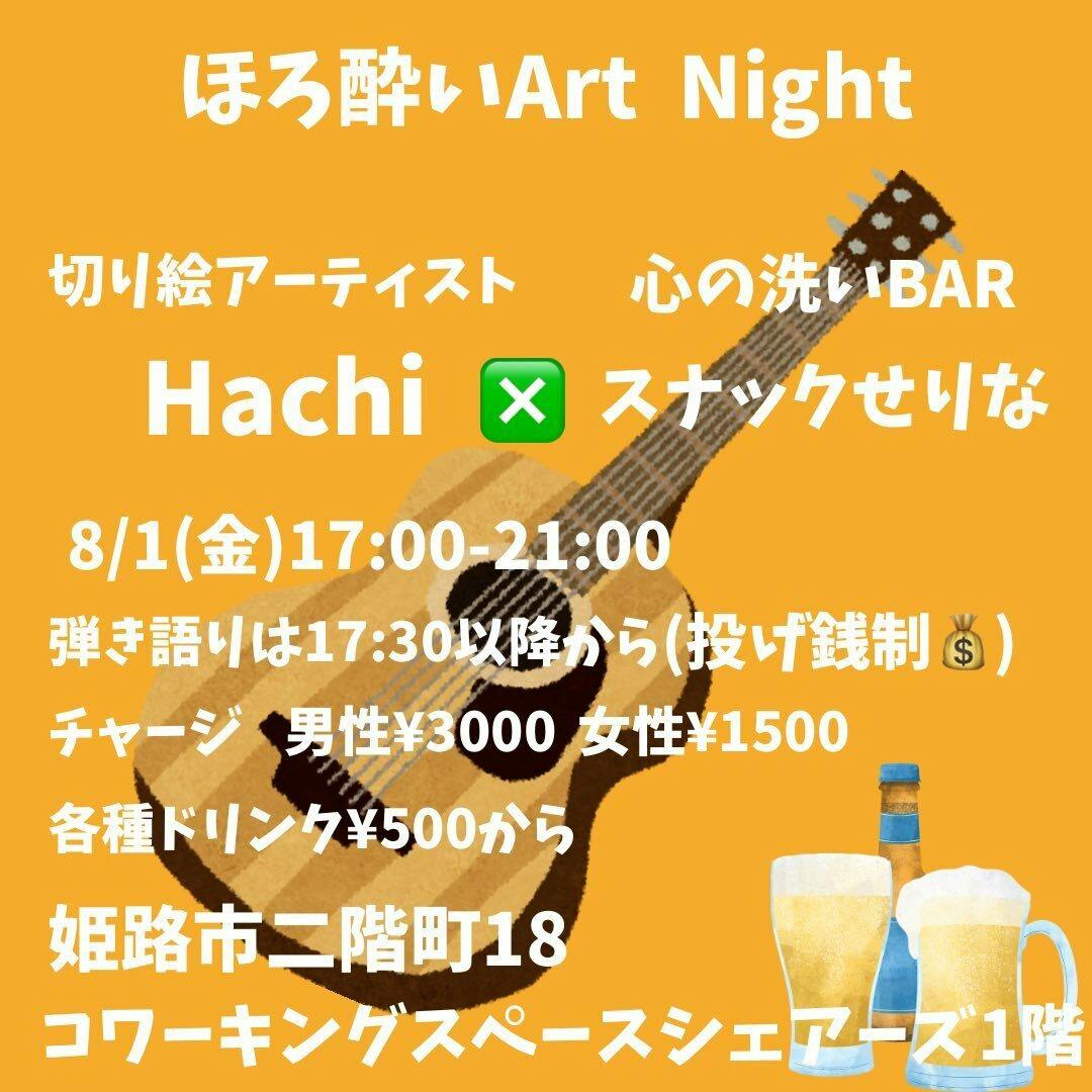 ★ほろ酔いアートNight姫路から世界へ羽ばたく切り絵アーティストHachiのギター弾き語り決まりました