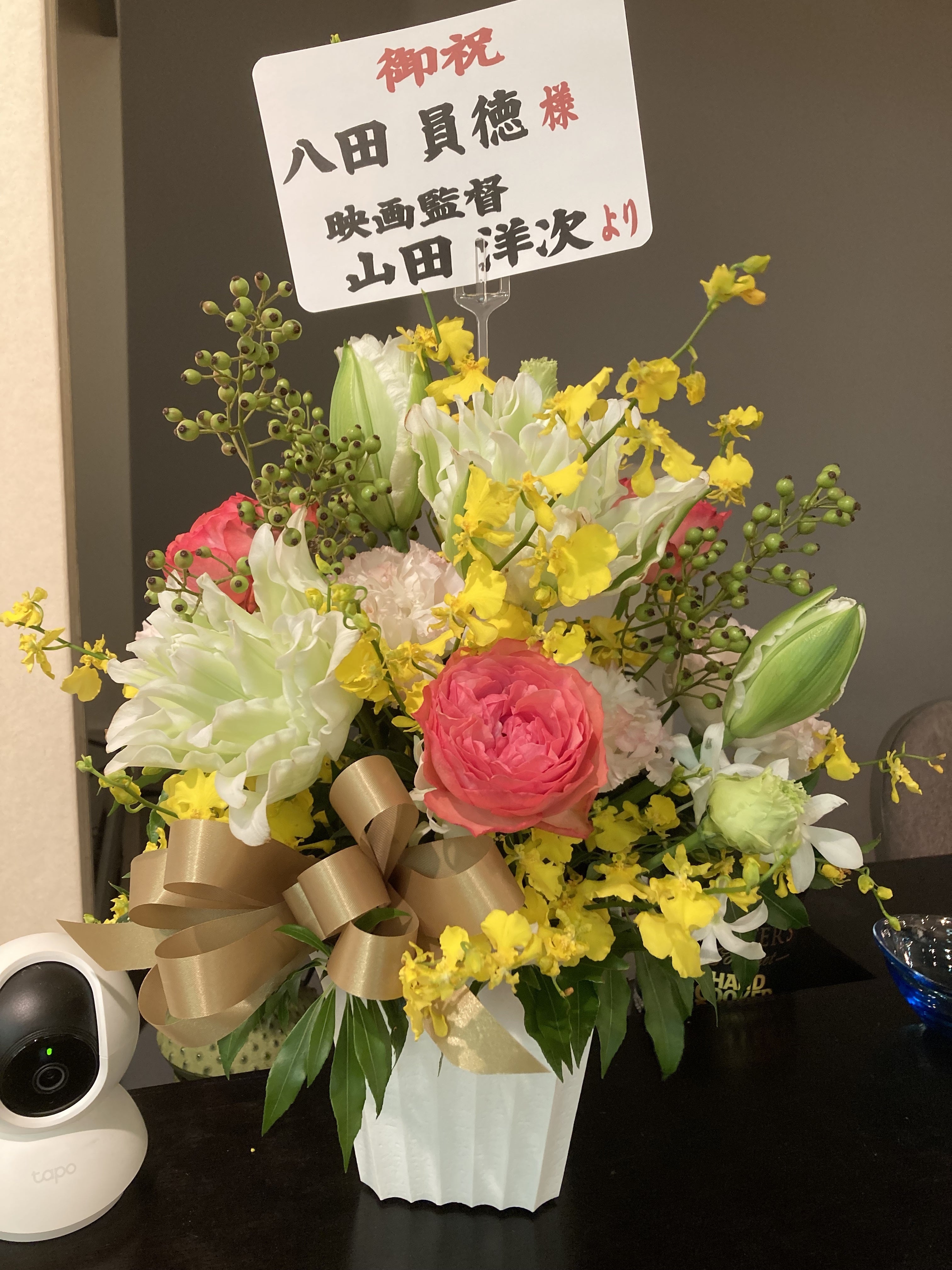 ご縁あって、山田洋次監督からお祝いの花を頂いたこともございます(2022年/銀座ギャラリーうぇすと)