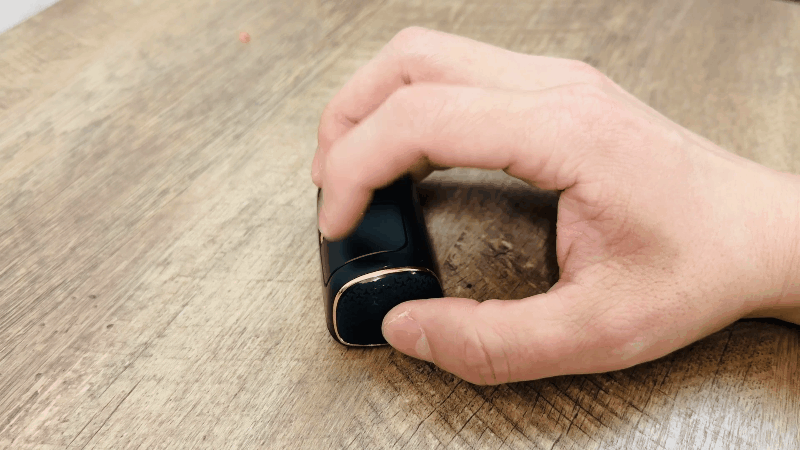 更に前作同様、軽さとサイズ、ワイヤレスの利点を活かして、膝や服の上、ソファーや、なんなら反対の手の平の上でも操作できます!