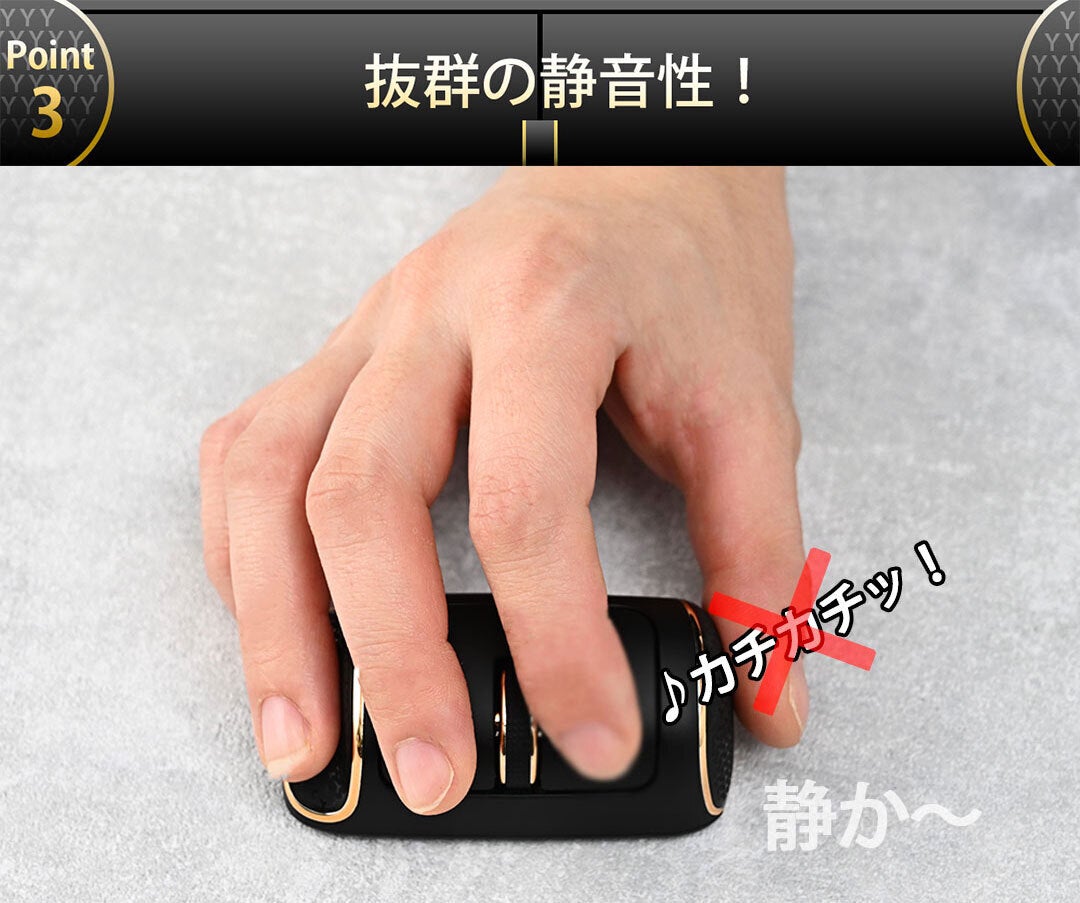電車やカフェ、オフィスで聞こえてくるクリック音、自分では気付かなくても実は予想以上に周りから嫌がられています!しかし静音仕様のこのマウスならそんな心配も無用です。