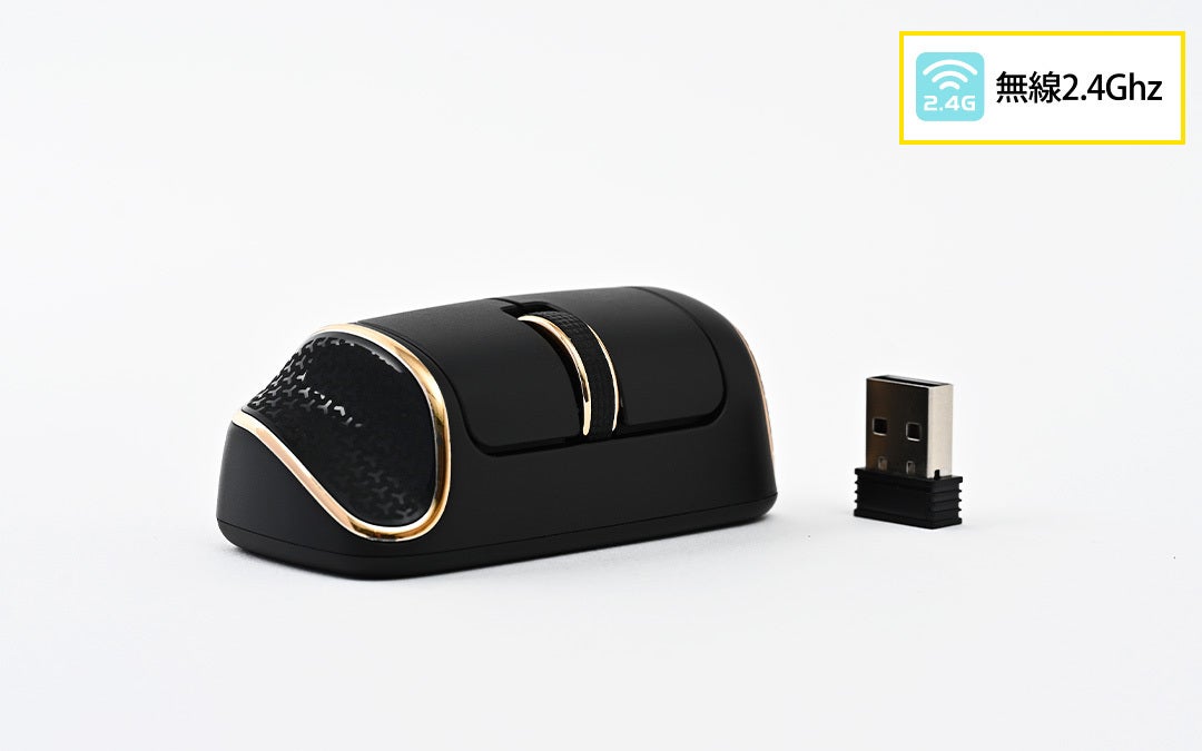 2.4Ghzワイヤレス接続で使用するUSBレシーバーは本体に収納でき、このレシーバーを含めても重さ約43gと軽量になります。